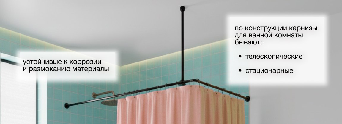 Длина. Измерьте ширину ванной и выберите необходимые карниз.