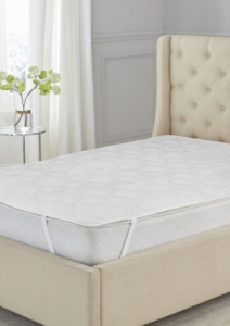 Наматрасник крепится сверху матраса, на фиксирующие резинки.