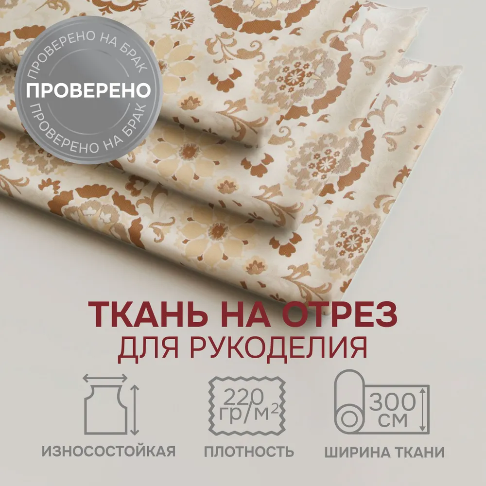 Портьерная ткань на отрез ширина 300 см Жаккард цвет капучино