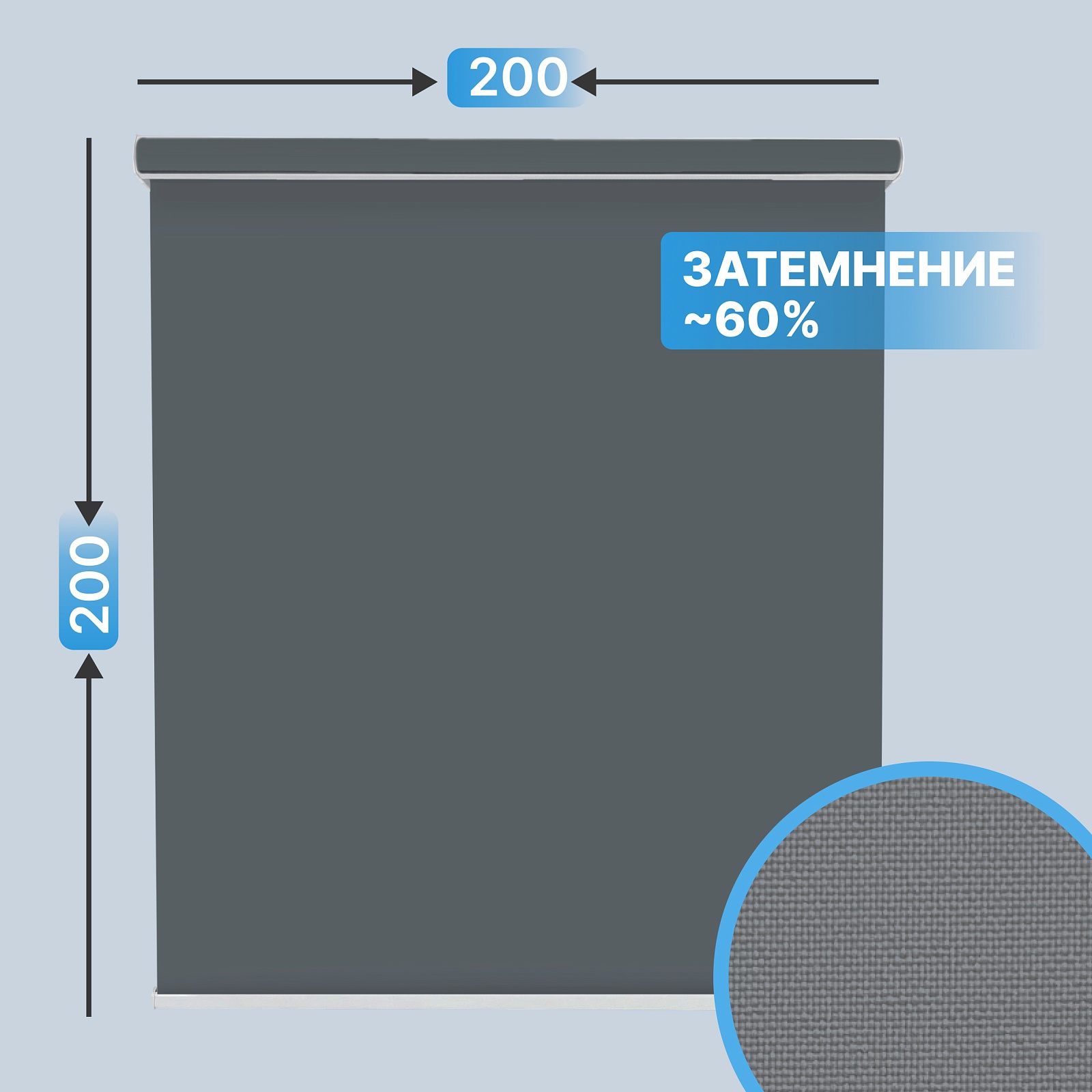 Автоматическая рулонная штора plain, серый, 200x200