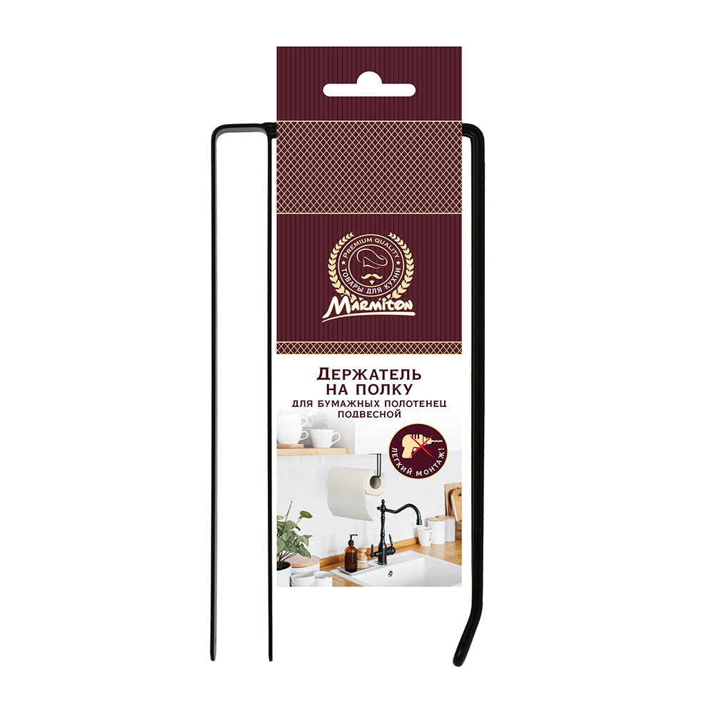 Держатель на полку для бумажных полотенец подвесной, металл, 20,5*10,5 см, черный MARMITON