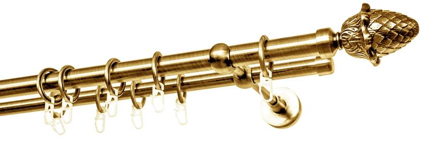 Карниз составной 2-х рядный гладкий ∅20/16мм, латунь, 400 см, Кедр