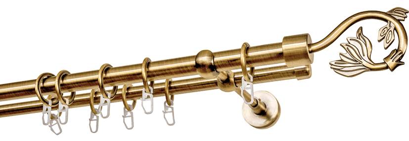 Карниз 2-х рядный гладкий ∅20/16мм, латунь, 400 см, Крокус