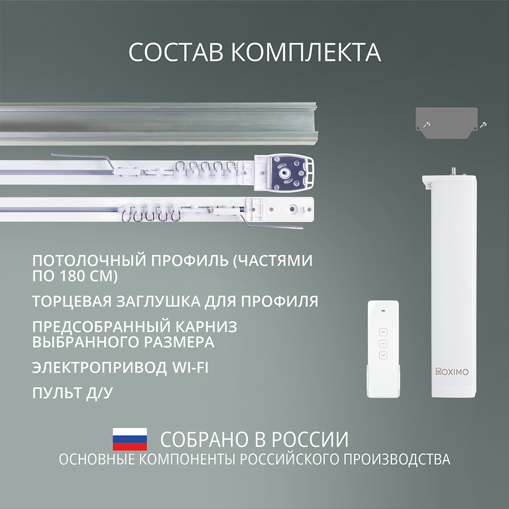 Компания Roximo – российский бренд электронных устройств для умного дома, существующий на рынке более 10 лет. Основные механические комплектующие для электрокарнизов производятся на российских производственных мощностях, а финальная сборка каждого электрокарниза осуществляется на собственном производстве в г. Москве.