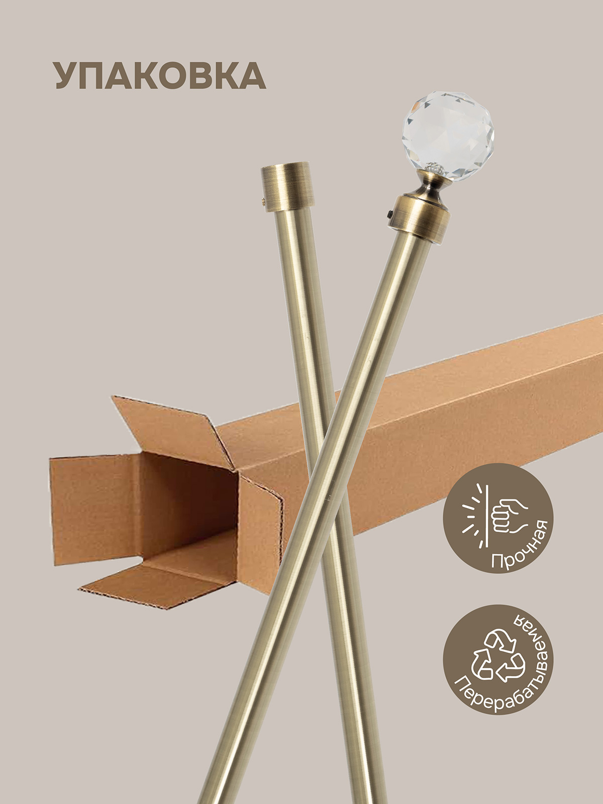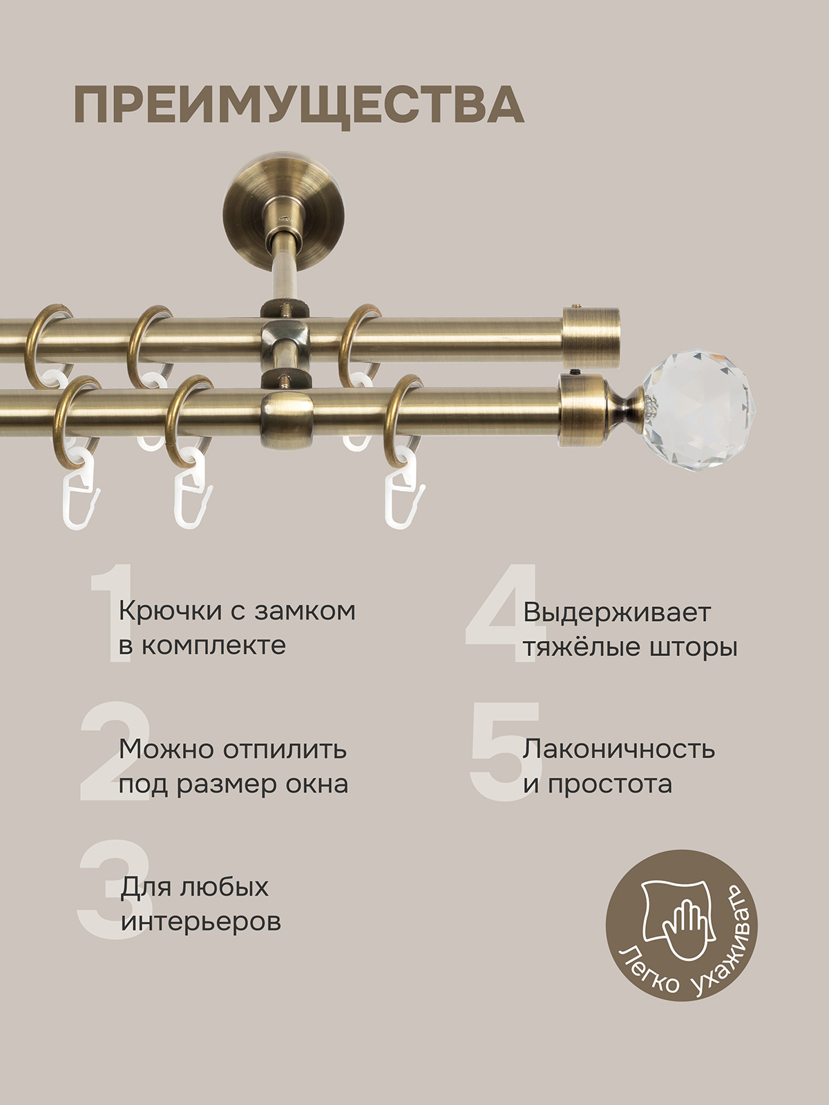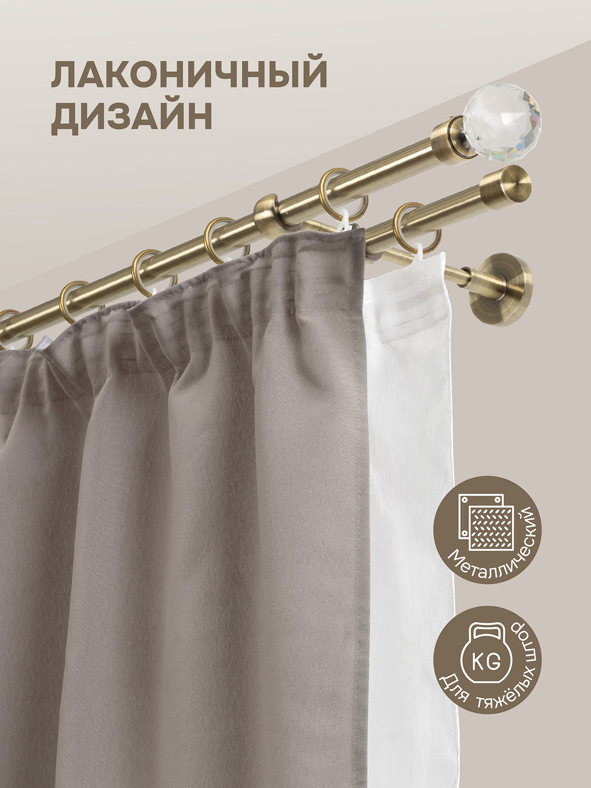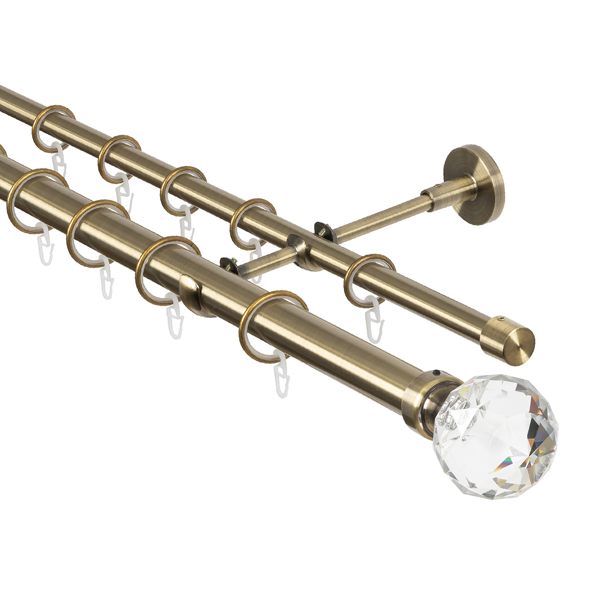 Карниз для штор двухрядный 300 см, настенный, штанги 25 мм и 16 мм, Шар кристальный, золото антик