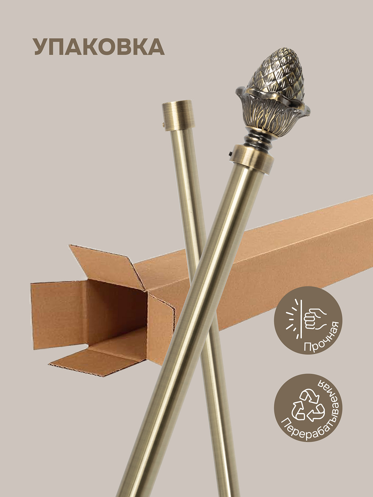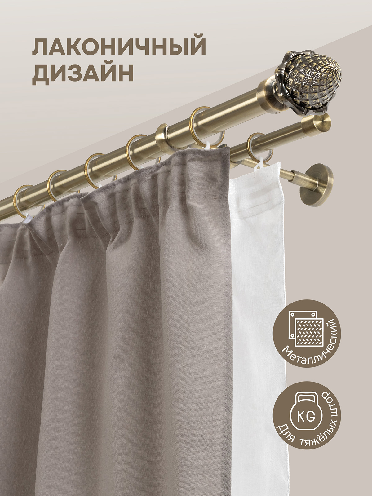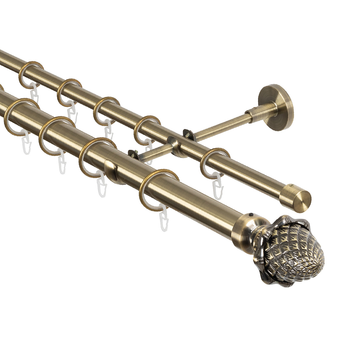 Карниз для штор двухрядный 300 см, настенный, штанги 25 мм и 16 мм, Шишка, золото антик