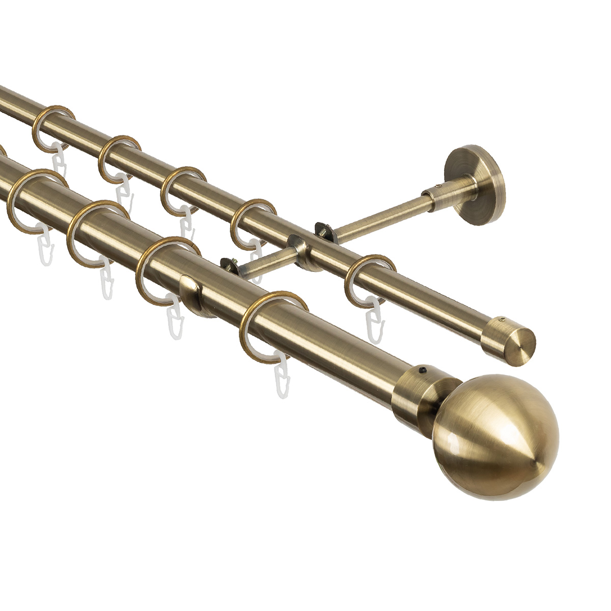 Карниз для штор двухрядный 350 см, настенный, штанги 25 мм и 16 мм, Шар на ножке, золото антик