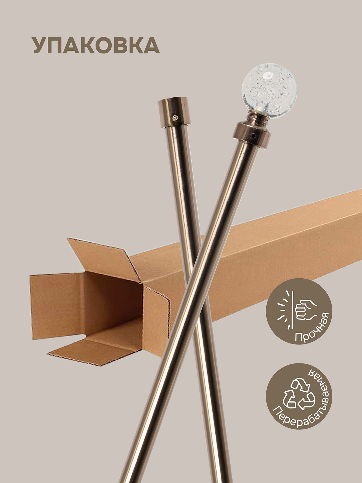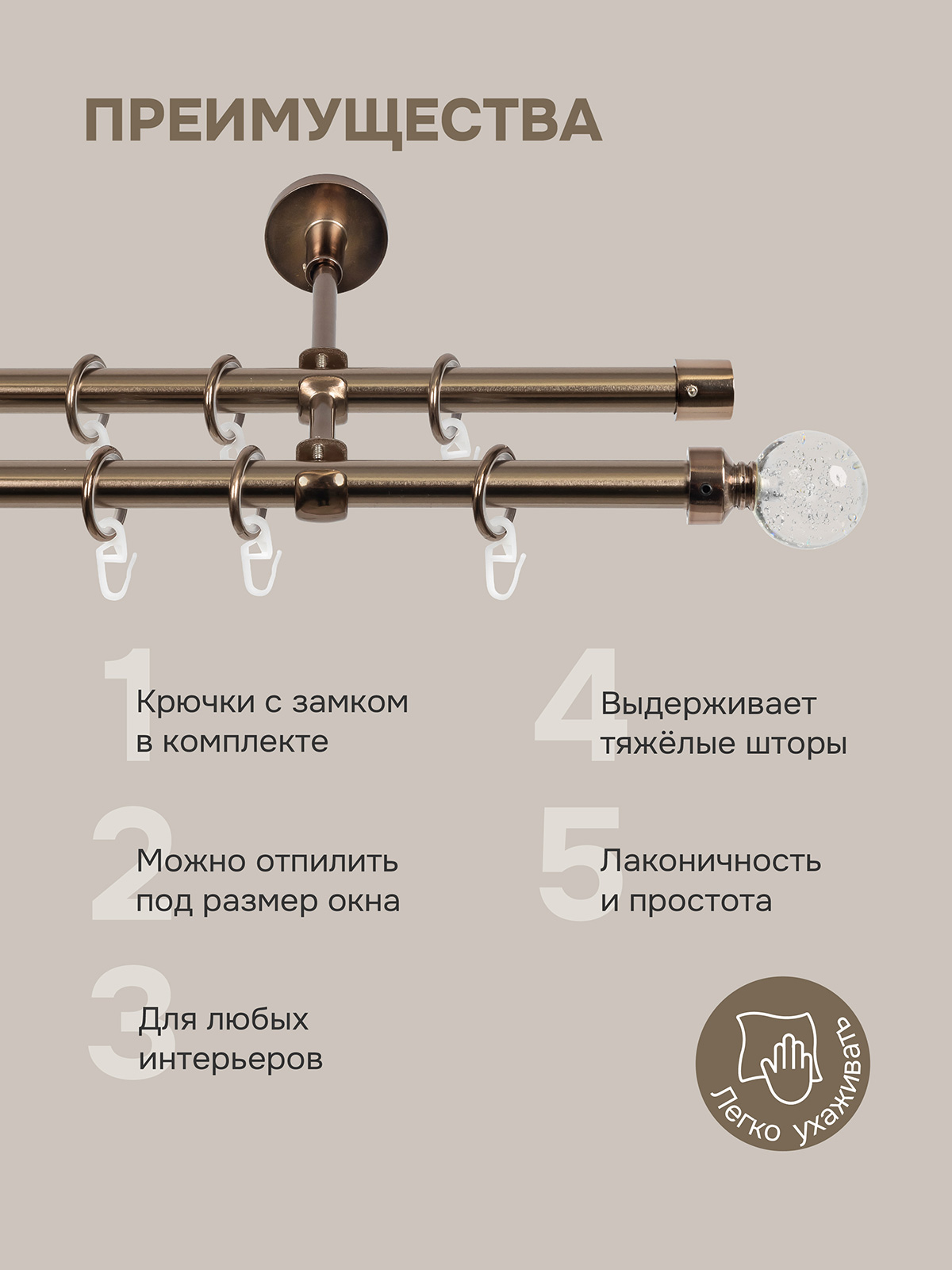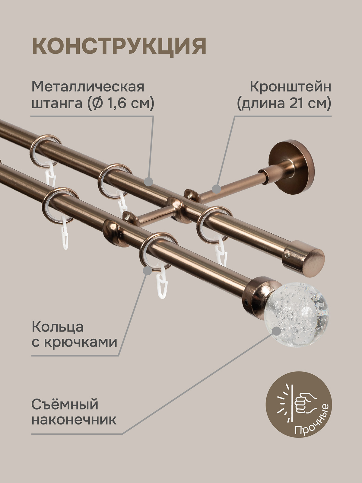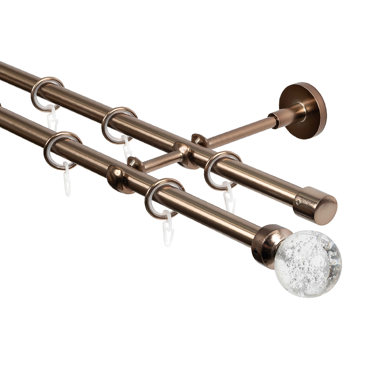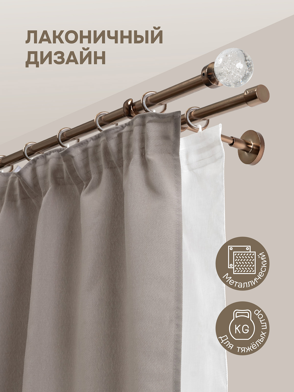 Карниз для штор двухрядный, настенный, штанги 16 мм, Шар Гелий, коньяк