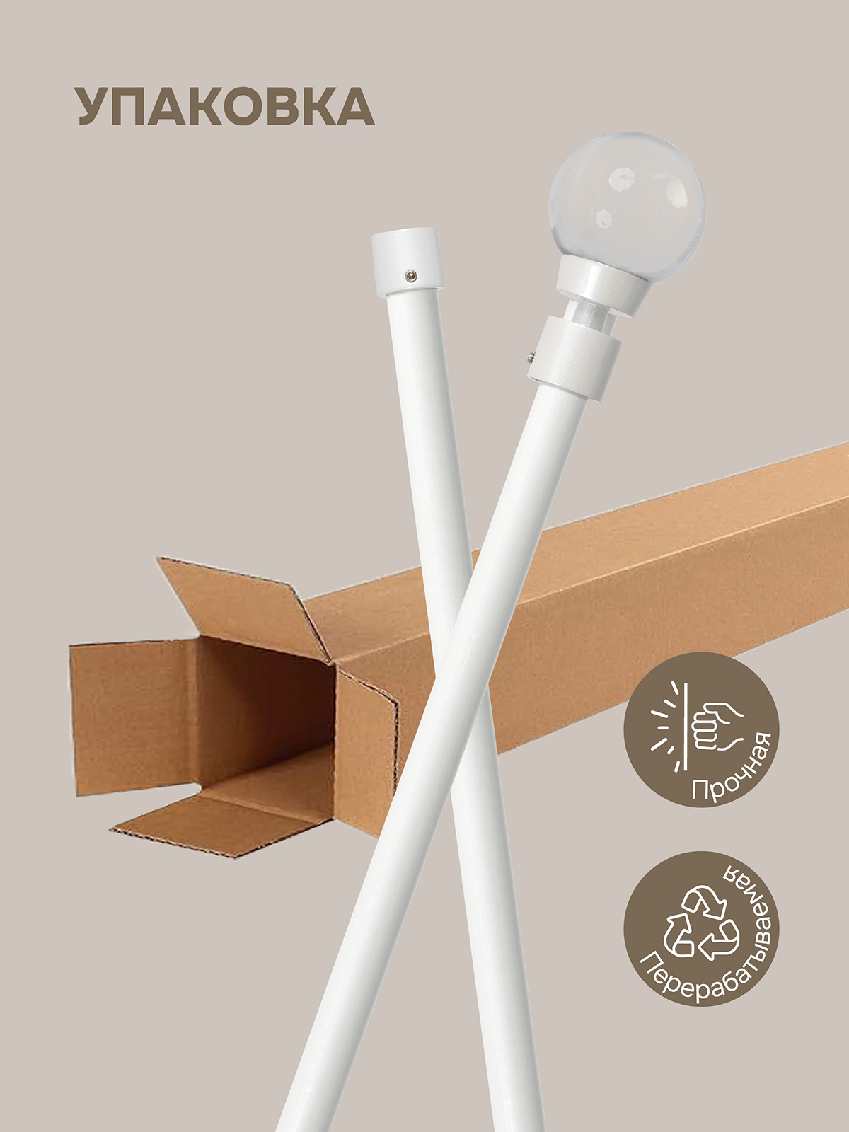 штанга 175 см - 4 шт, кронштейн - 3 шт, наконечник - 2 шт, наконечник-заглушка - 2 шт, соединитель - 2 шт, кольца - 70 шт, крючки - 70 шт