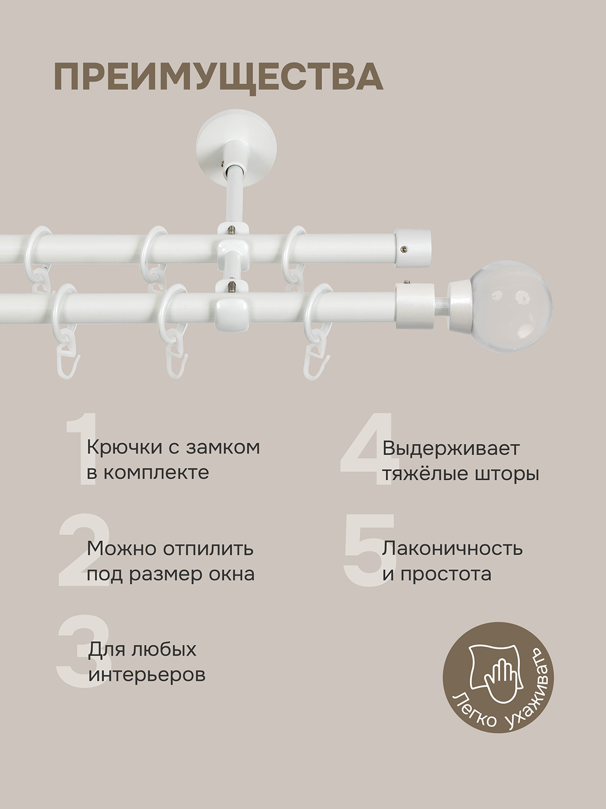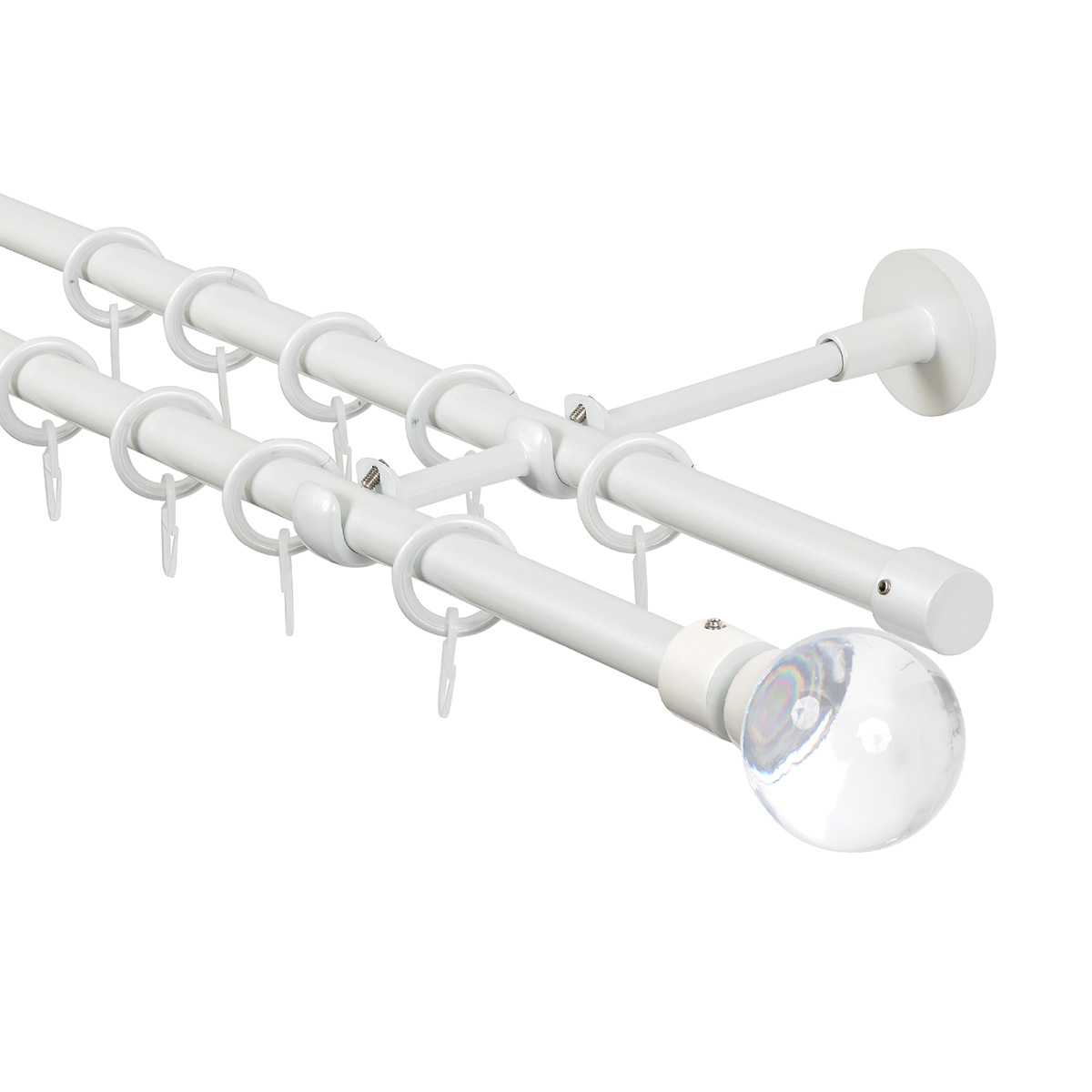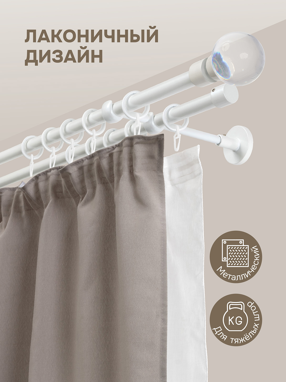 Карниз для штор двухрядный, настенный, штанги 16 мм, Шар в оправе, жемчуг