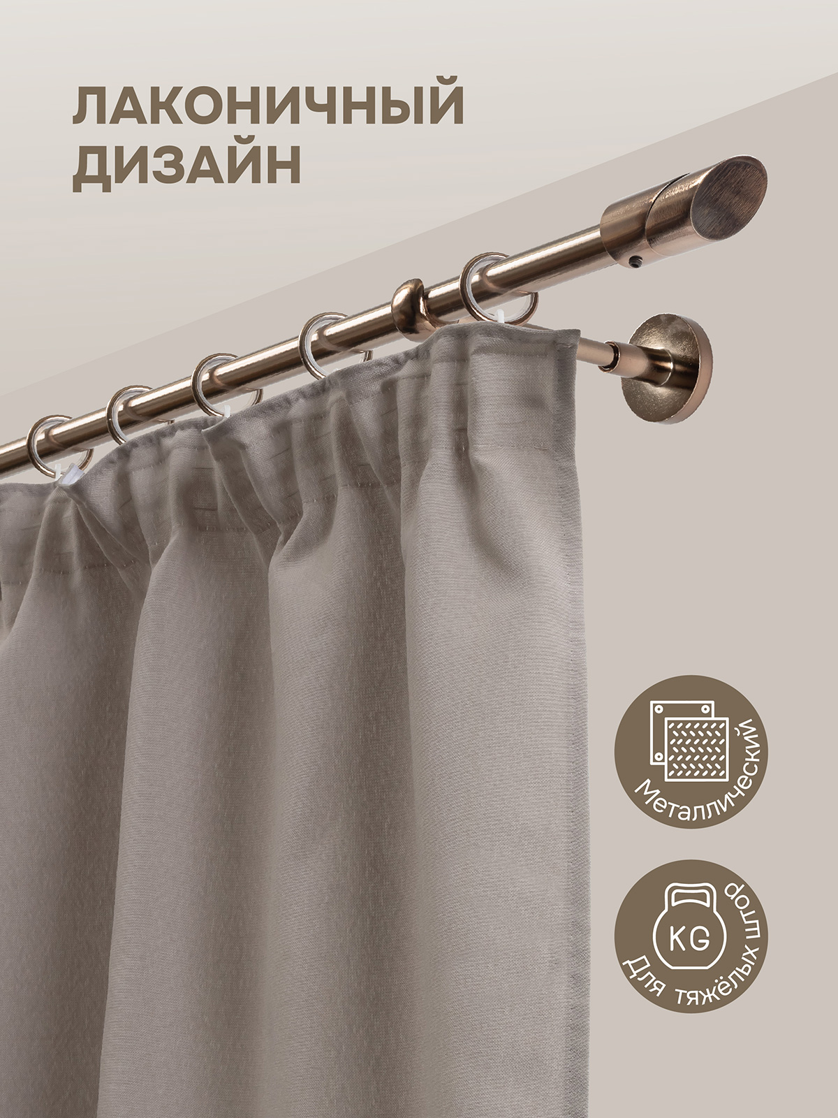 Карниз для штор, настенный, штанга 16 мм, Утес, коньяк