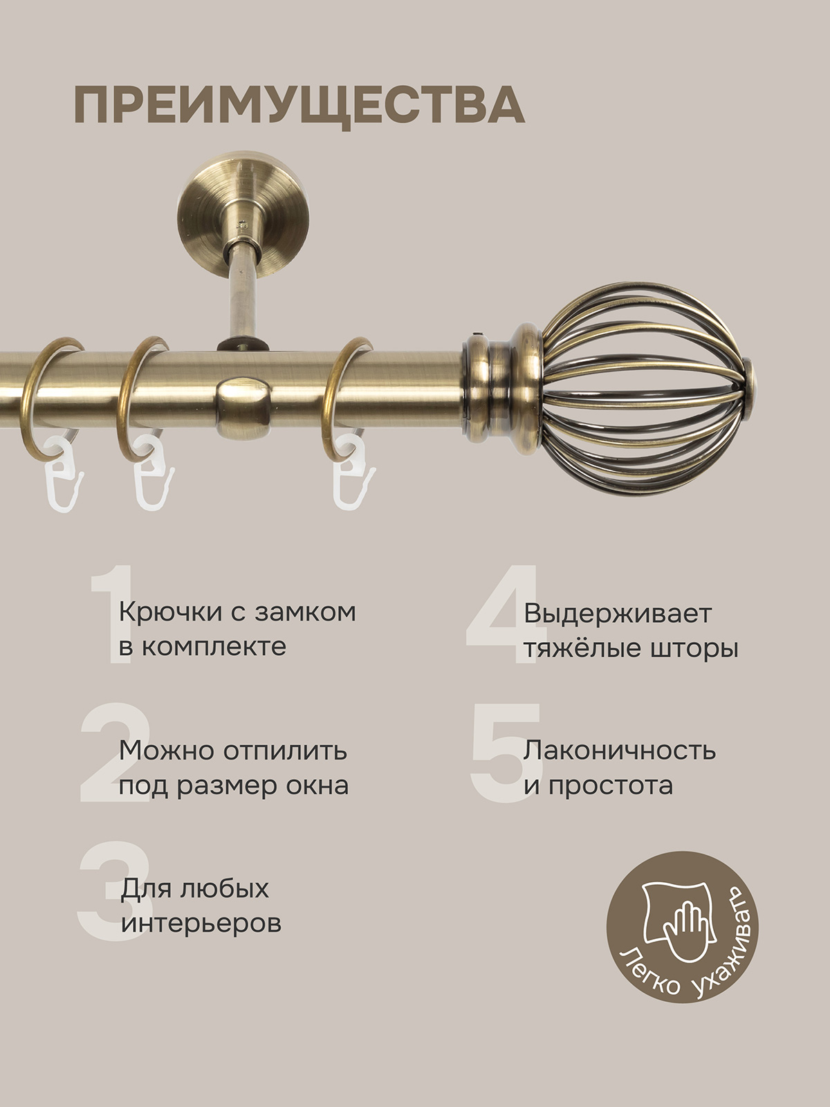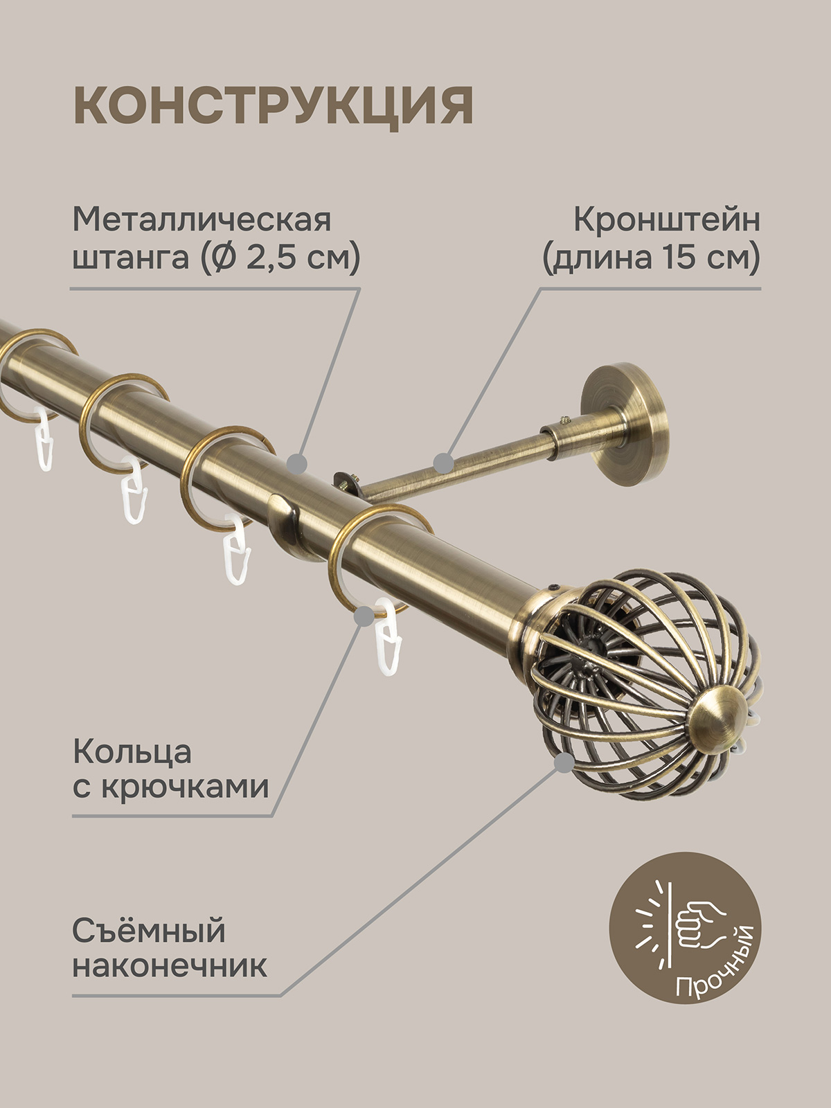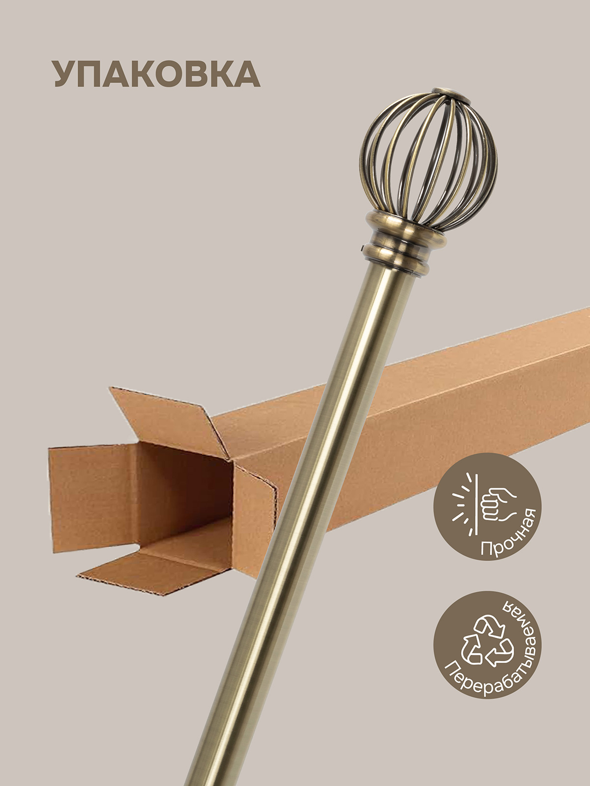 Карниз для штор, настенный, штанга 25 мм, Шар кованый, золото антик