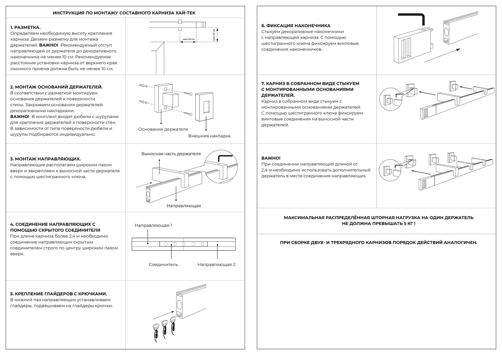 Максимальная нагрузка: 5 кг/на держатель
