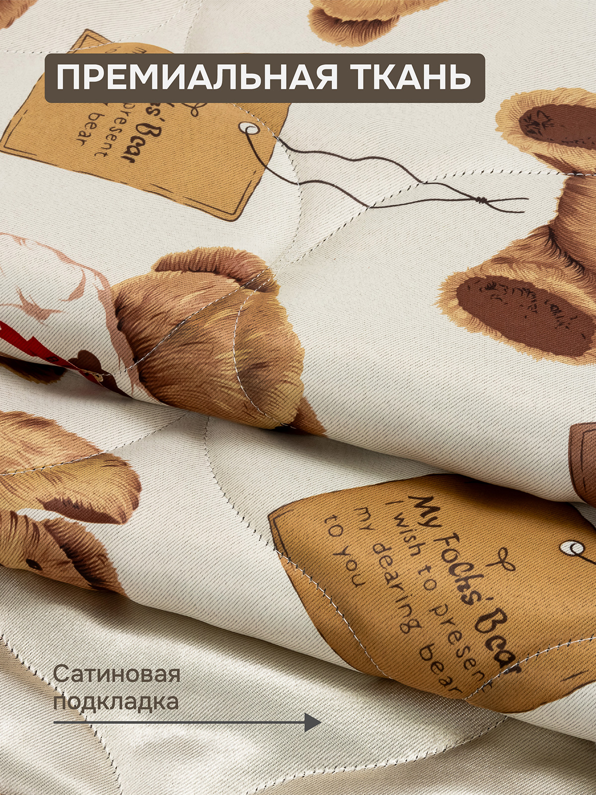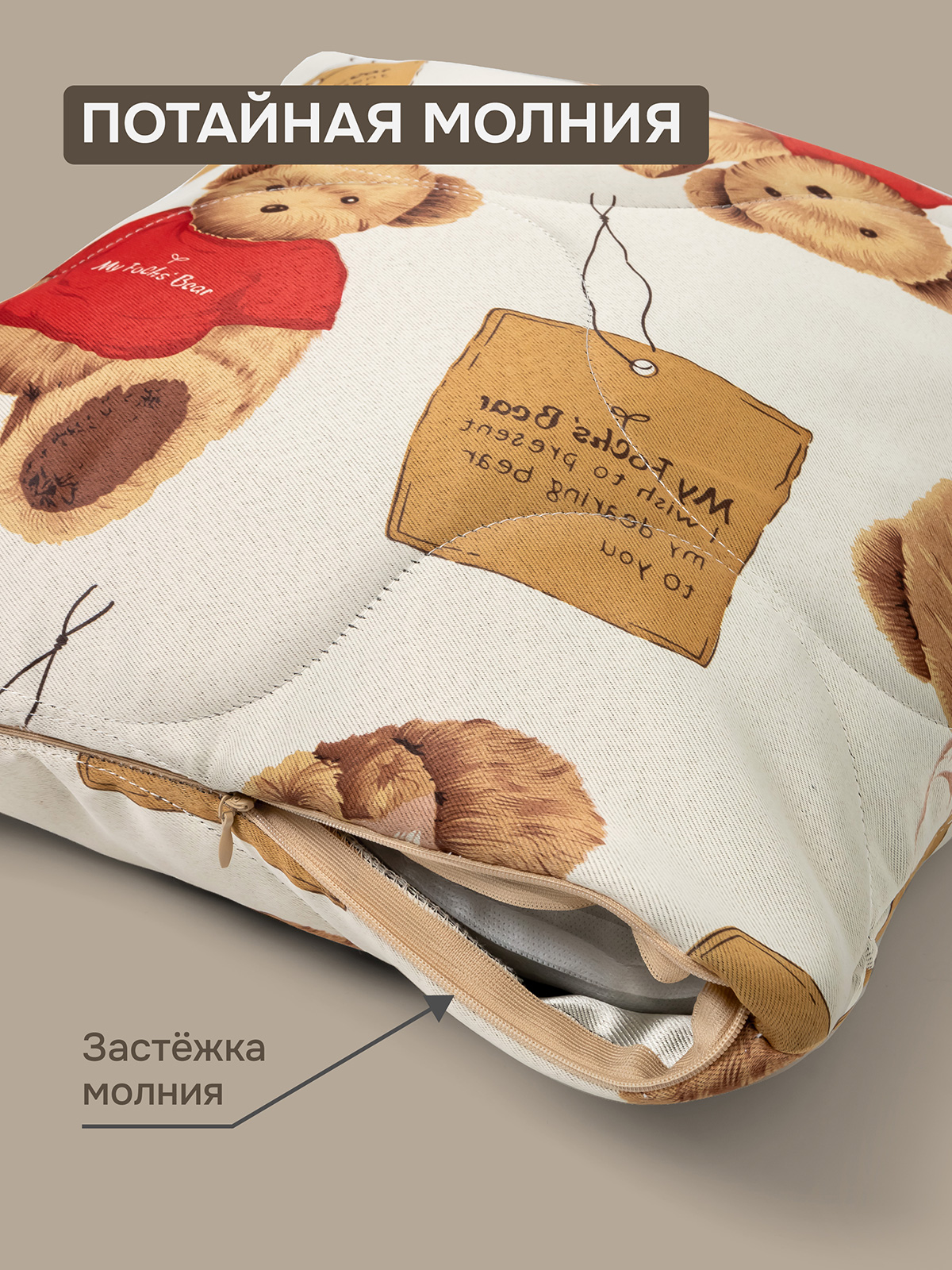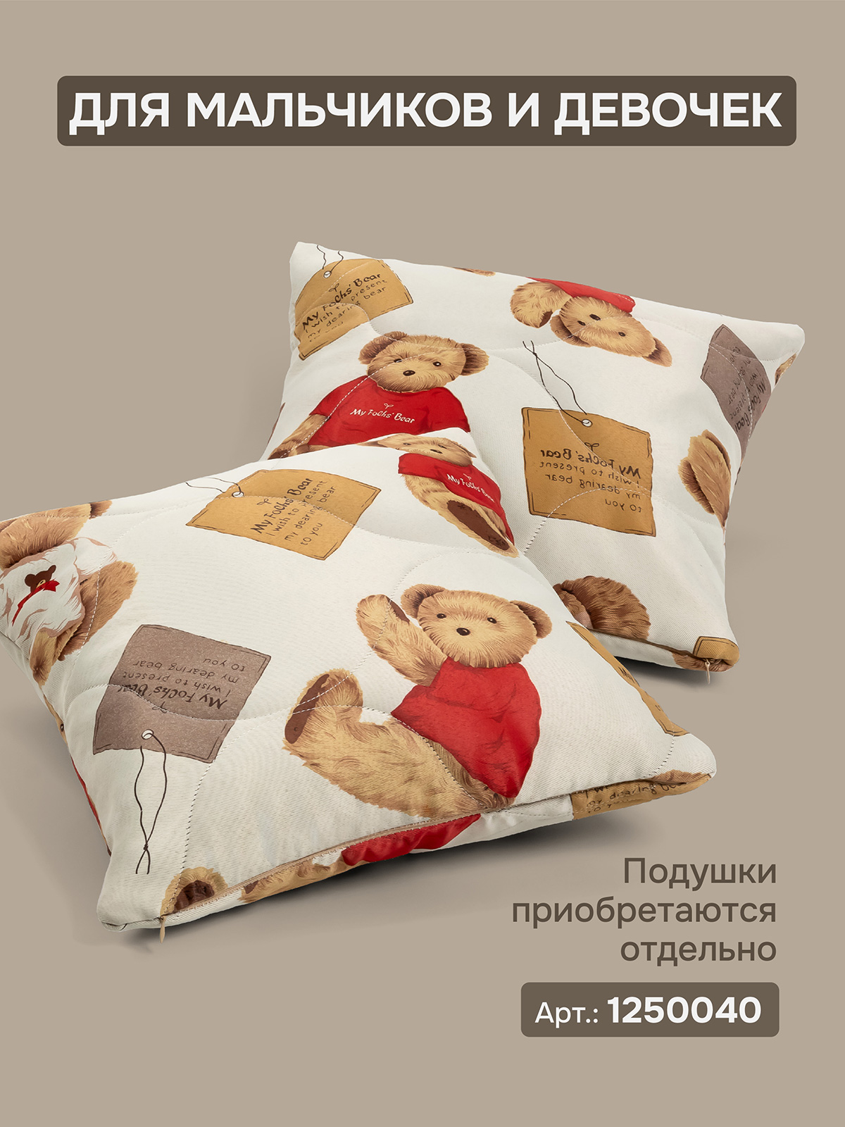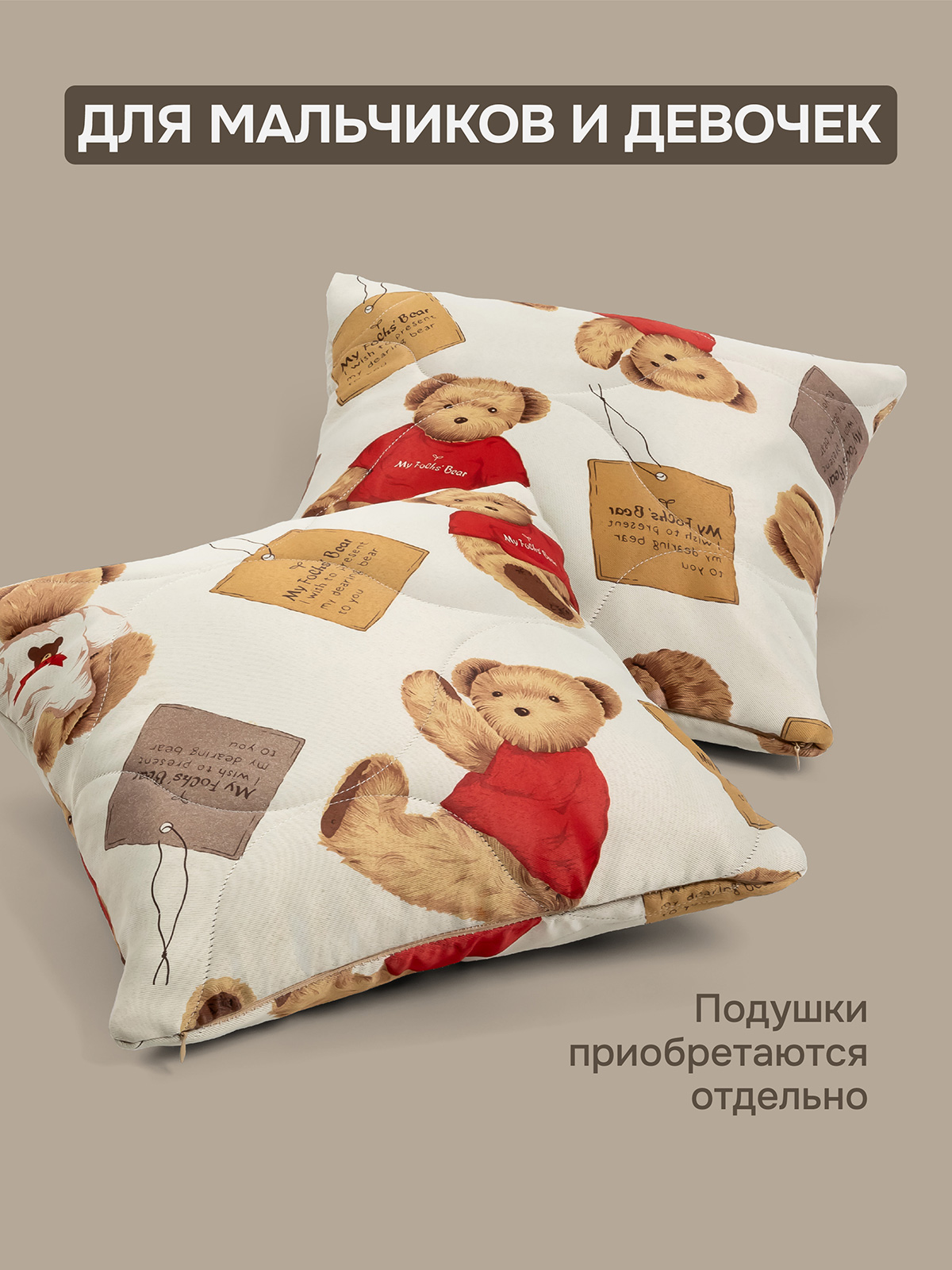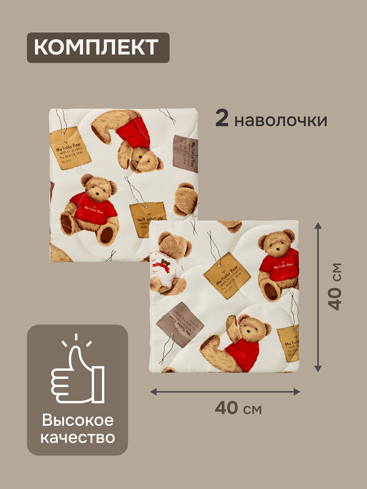Комплект 2 наволочки стеганных декоративных Мишутка, 40х40 см, цвет бежевый