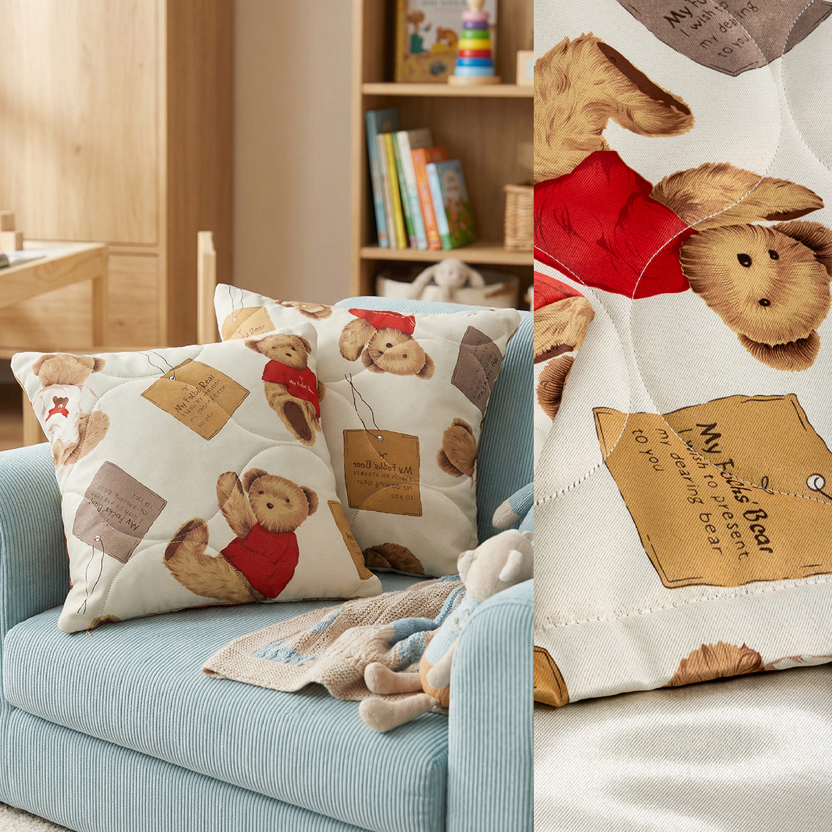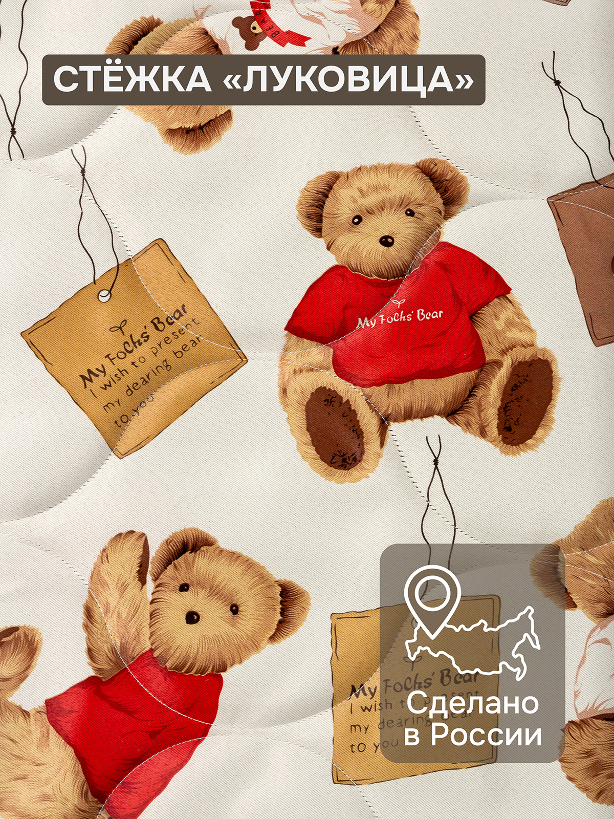 Комплект из двух стеганных декоративных наволочек Мишутка 40х40 см.