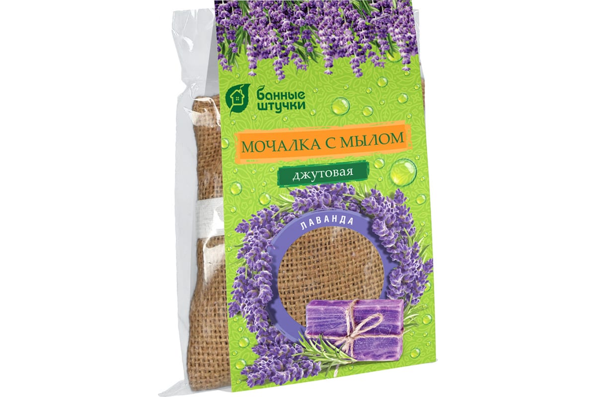 Мочалка джутовая "Лаванда" с натуральной мыльной стружкой, 100 г "Банные штучки"