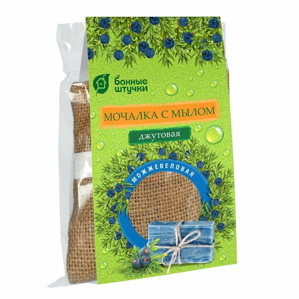 Мочалка джутовая "Можжевеловая" с натуральной мыльной стружкой, 100 г "Банные штучки"