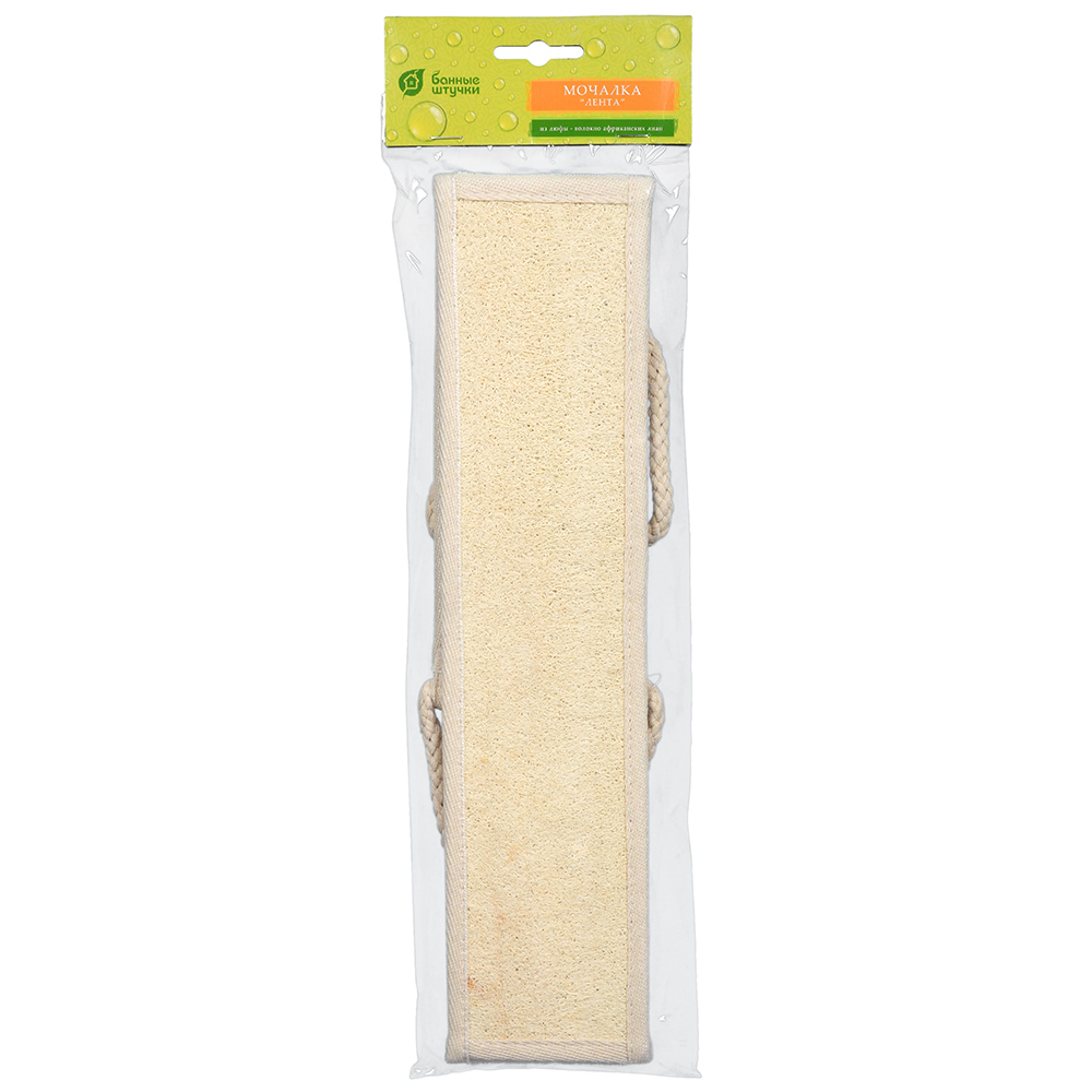 Мочалка из люфы, лента с сегментами, с хлопком, 80х8,5 см (98х8,5 см с ручками), medium, для бани и сауны "Банные штучки"
