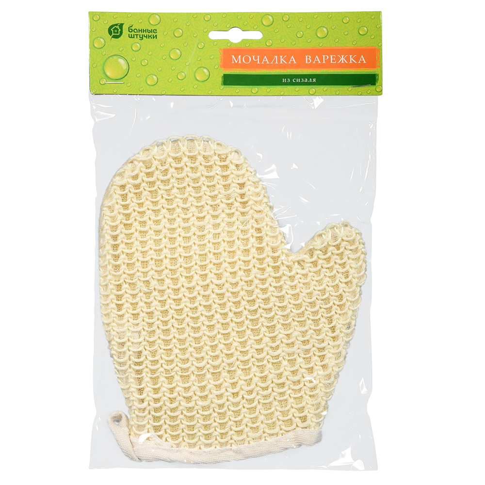 Мочалка из сизаля, варежка с хлопком, 18х20 см, hard, для бани и сауны "Банные штучки"