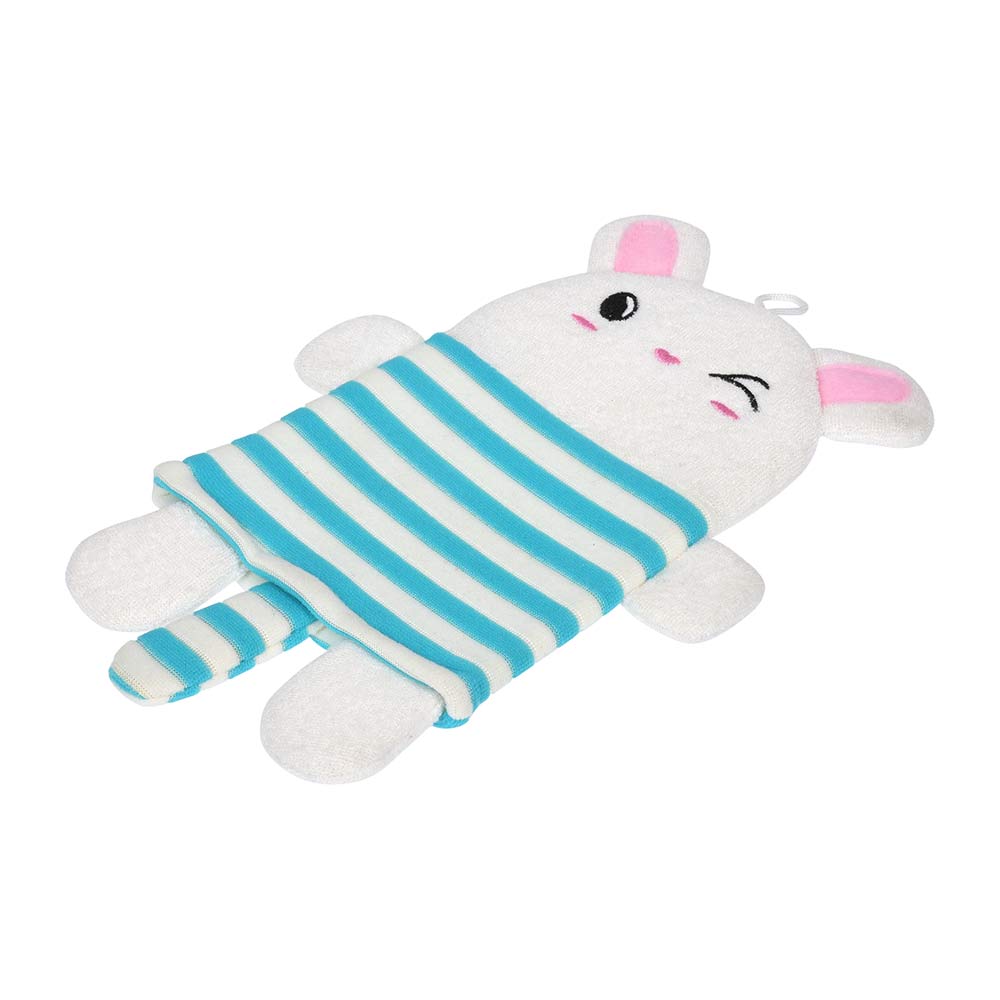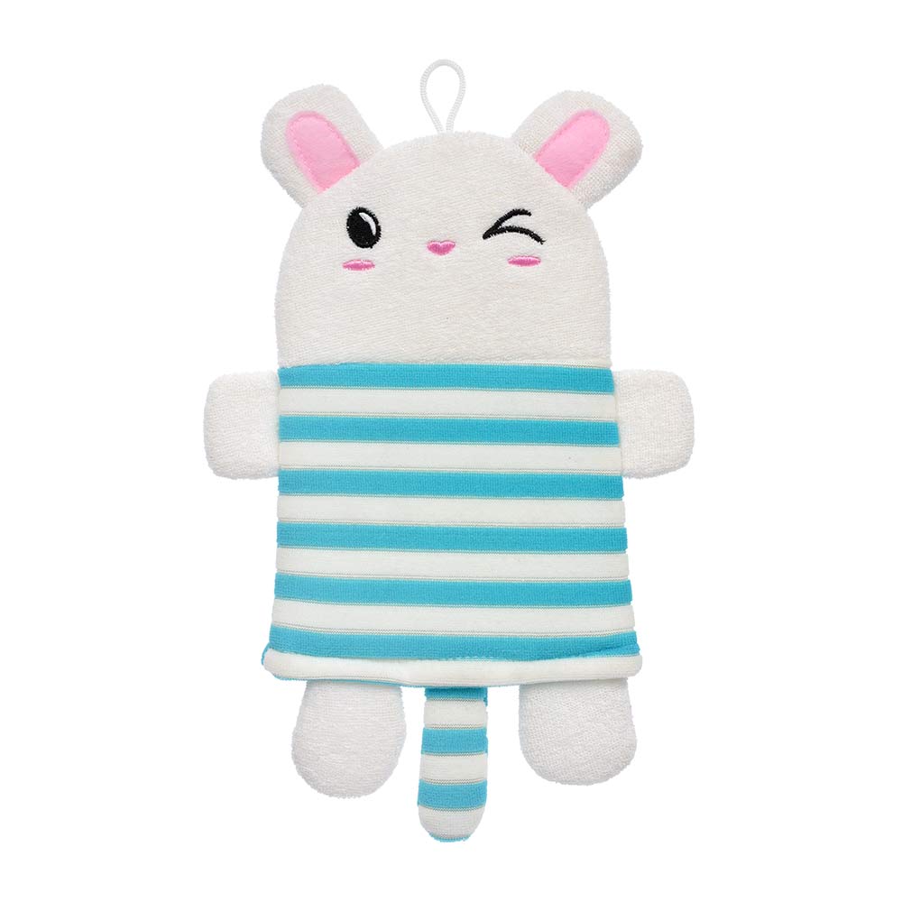 Мочалка варежка для нежной и чувствительной кожи "Зайчик в матроске" с надписью "Давай поиграем", 27x17,5 см, soft, для бани и сауны,"Банные штучки"