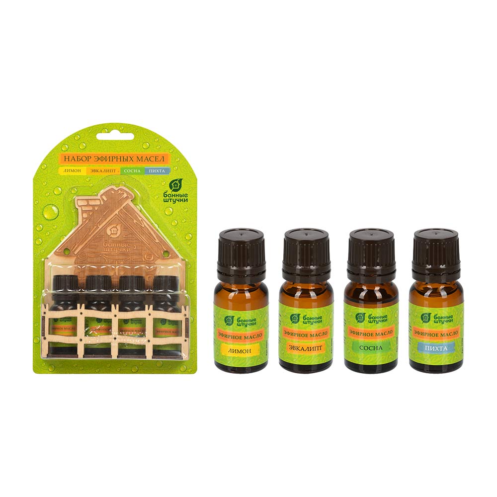 Набор эф. масел "Банька" (эвкалипт+сосна+лимон+пихта) 4 масла по 10 мл "Банные штучки"