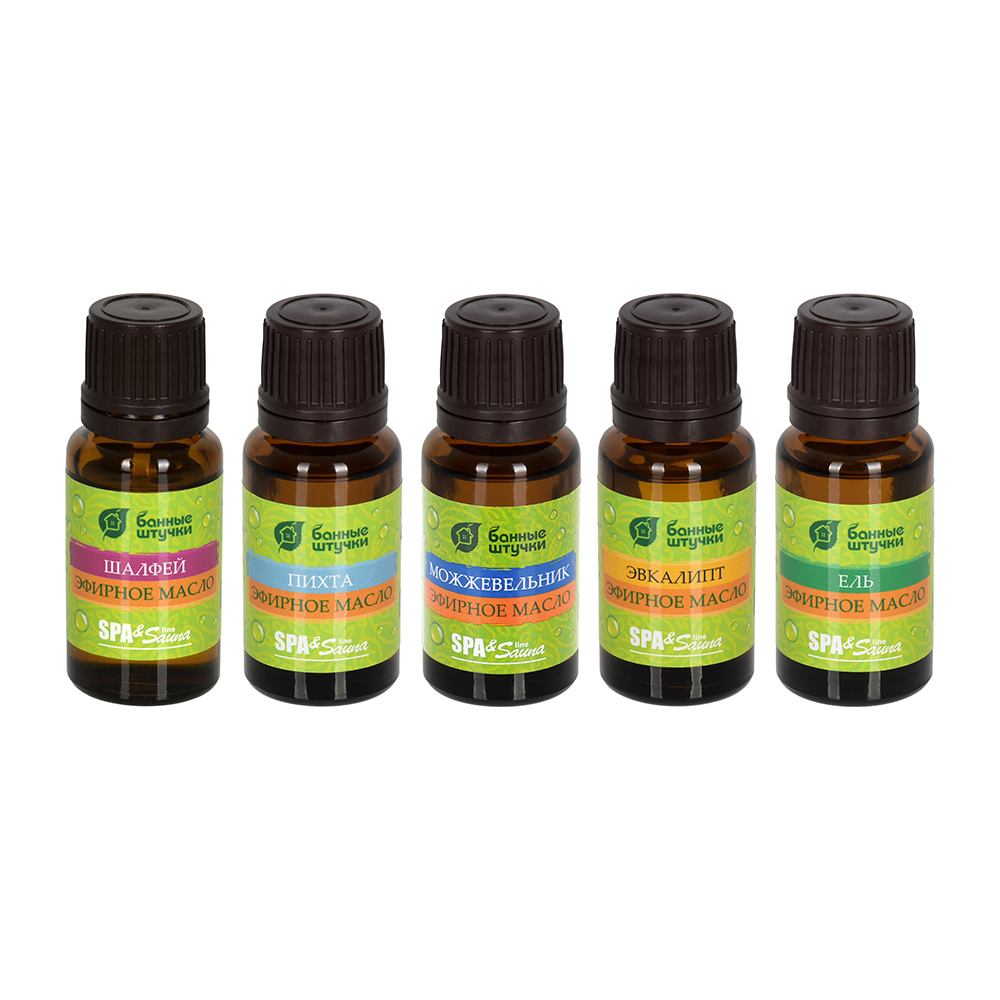 Набор эф. масел "Легкое дыхание" (пихта+можжевельник+ель+шалфей+эвкалипт) 5 масел по 15 мл "Банные штучки"