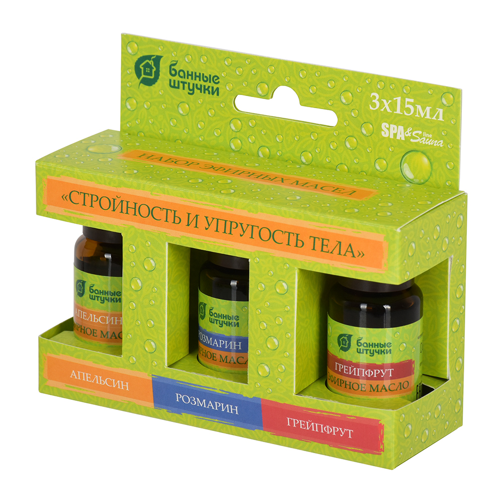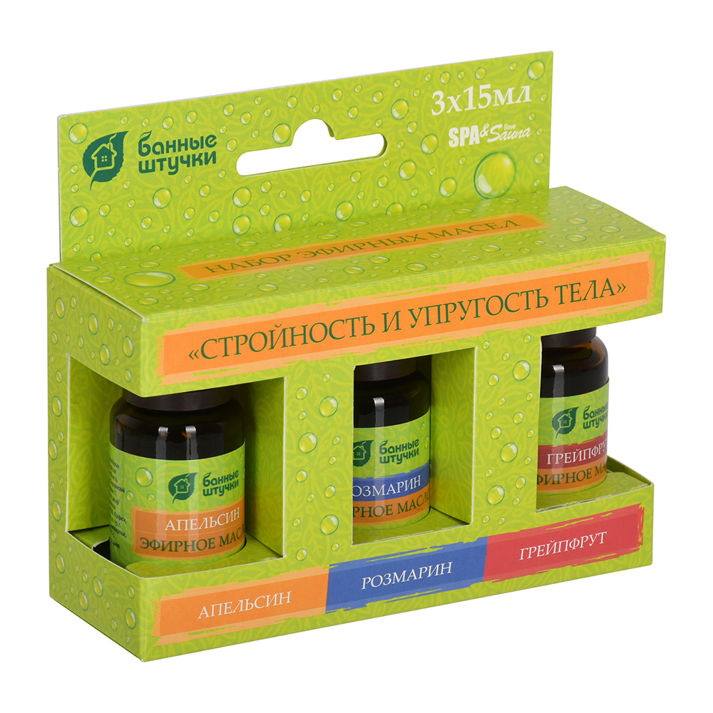 Набор эфирных масел "Стройность и упругость тела" (апельсин, грейпфрут, розмарин) 3 масла по 15 мл "Банные штучки"