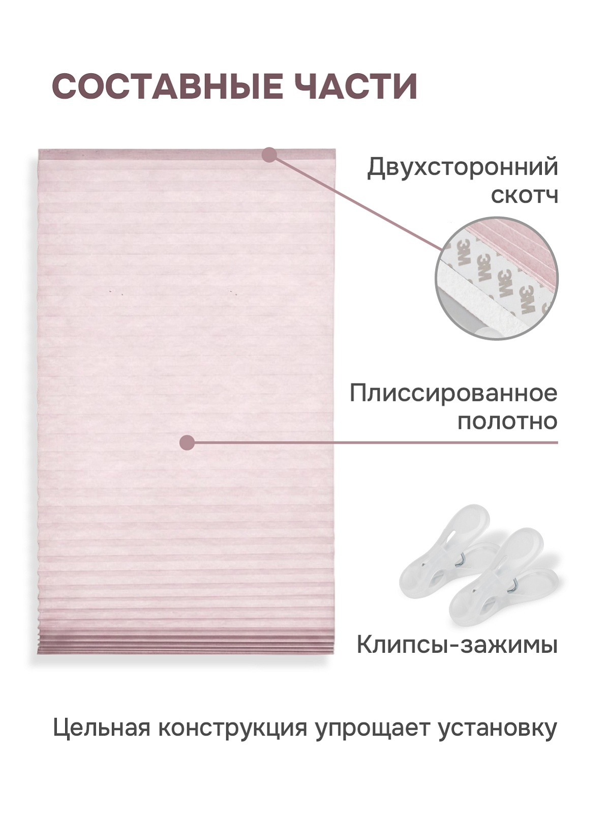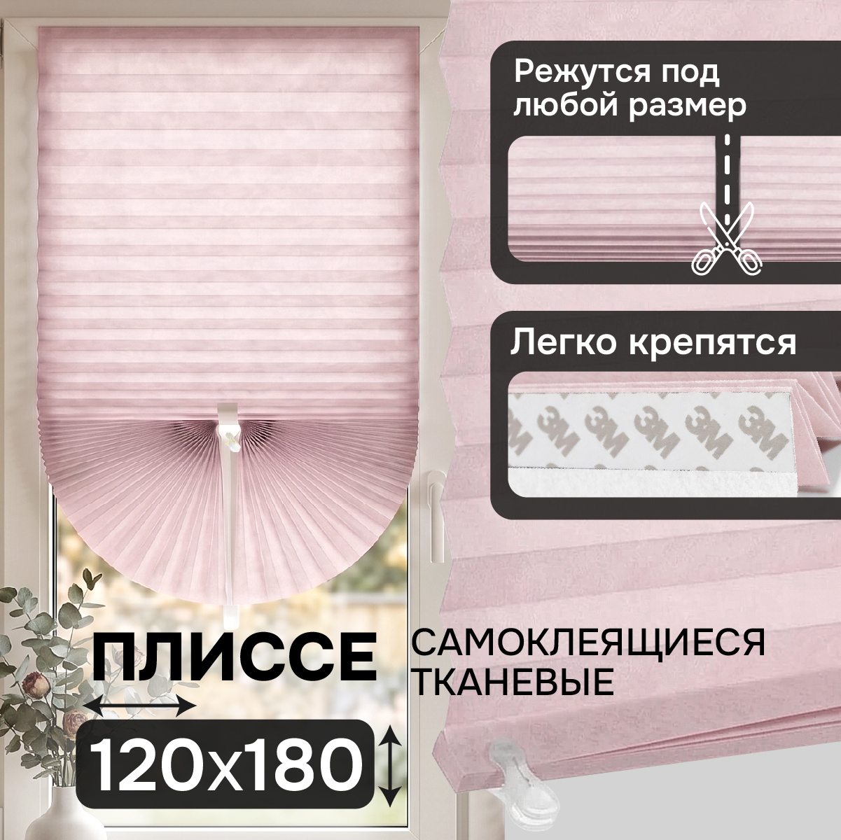 Плиссе самоклеящиеся тканевые, розовый, 120х180 см