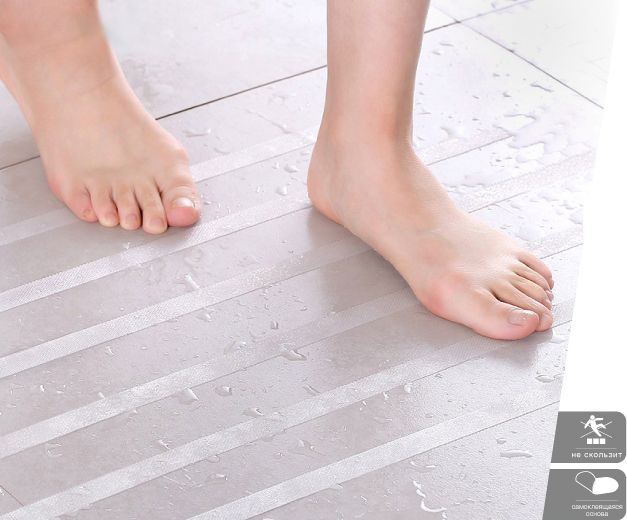 Безопасная, противоскользящая поверхность, высокая прочность и долговечность. Легко очищается бытовыми моющими средствами. Эффективно защищает от скольжения, падения и травм. Проста в применении.