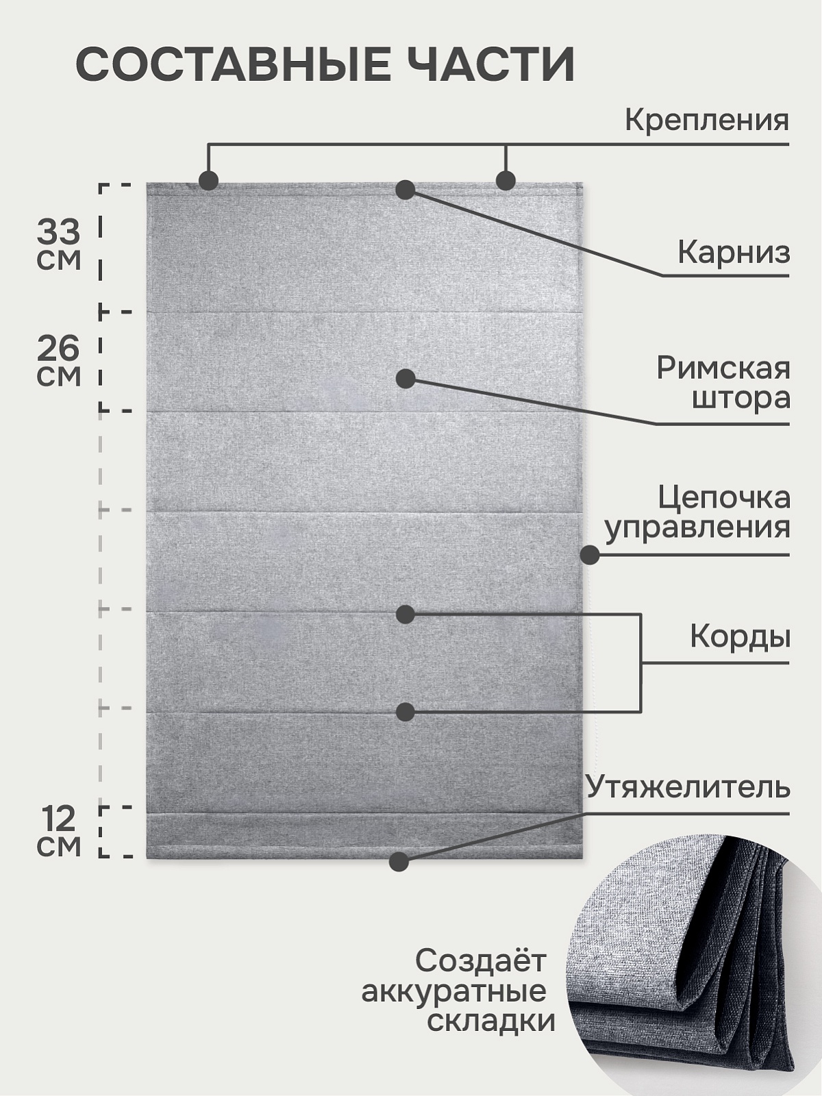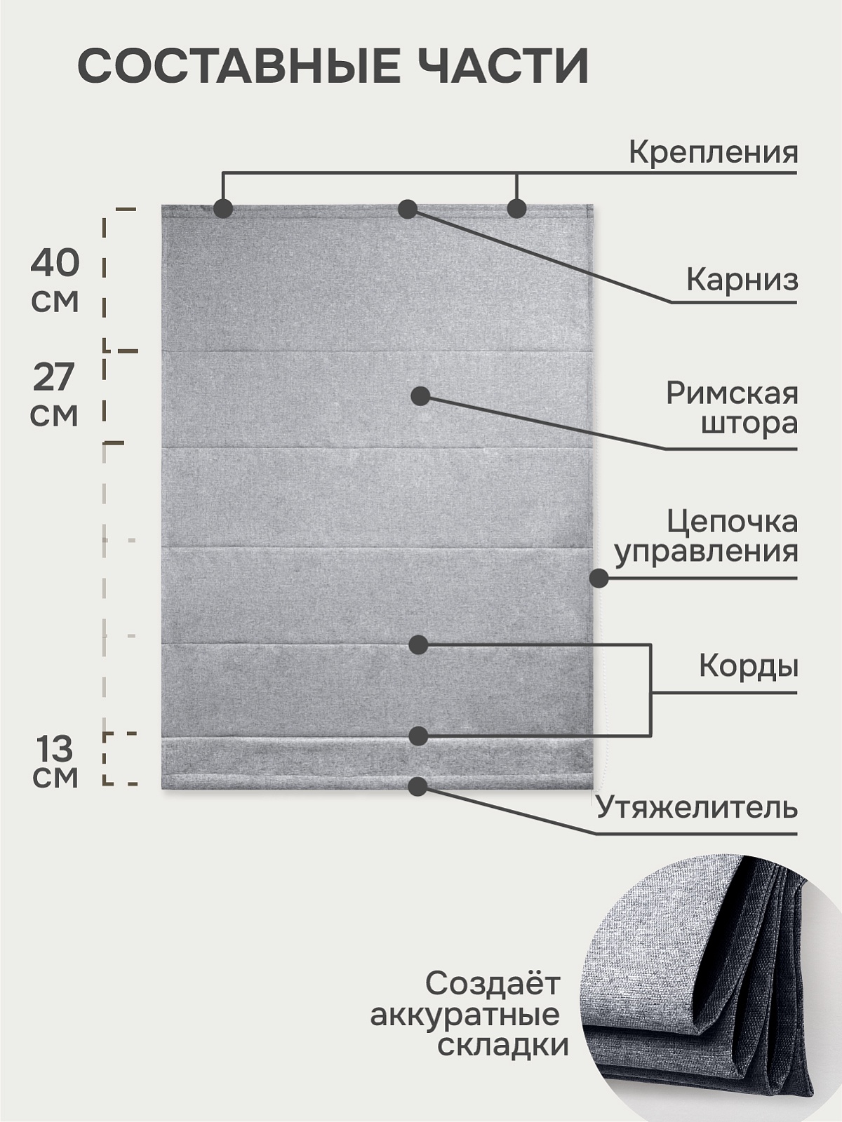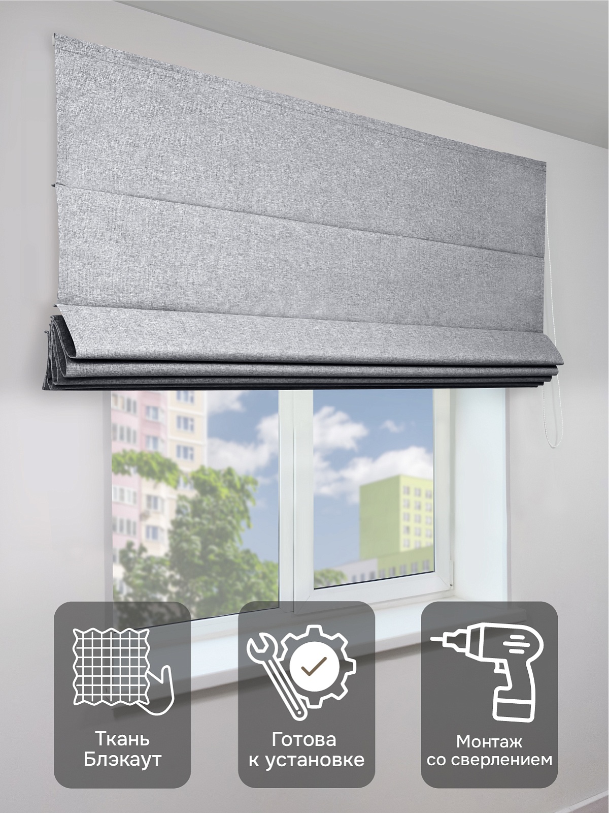 Римская штора блэкаут, Бисмарк на цепочном механизме, серый