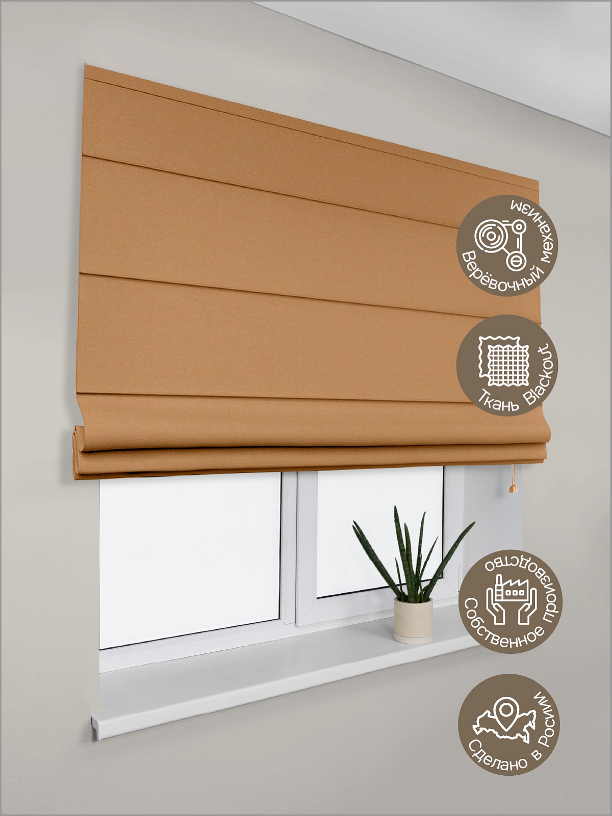 Римская штора на верёвочном механизме, Blackout, цвет оранжевый