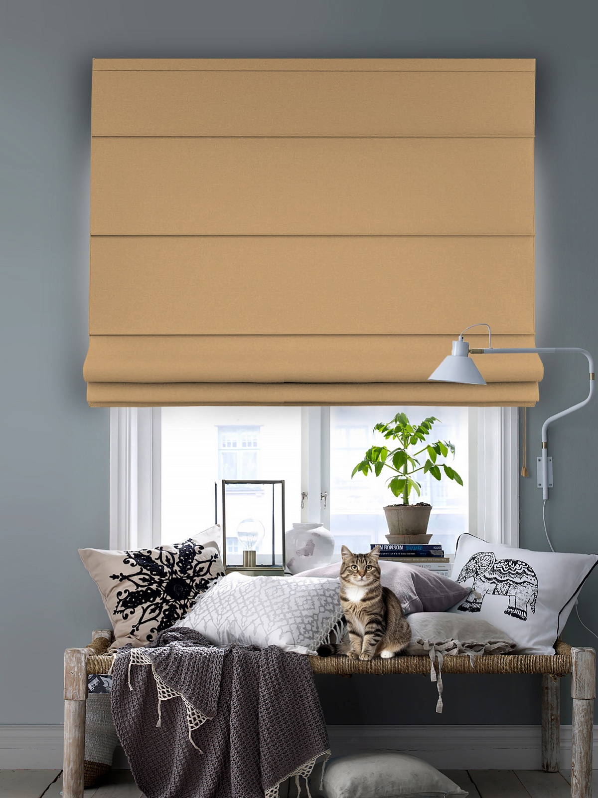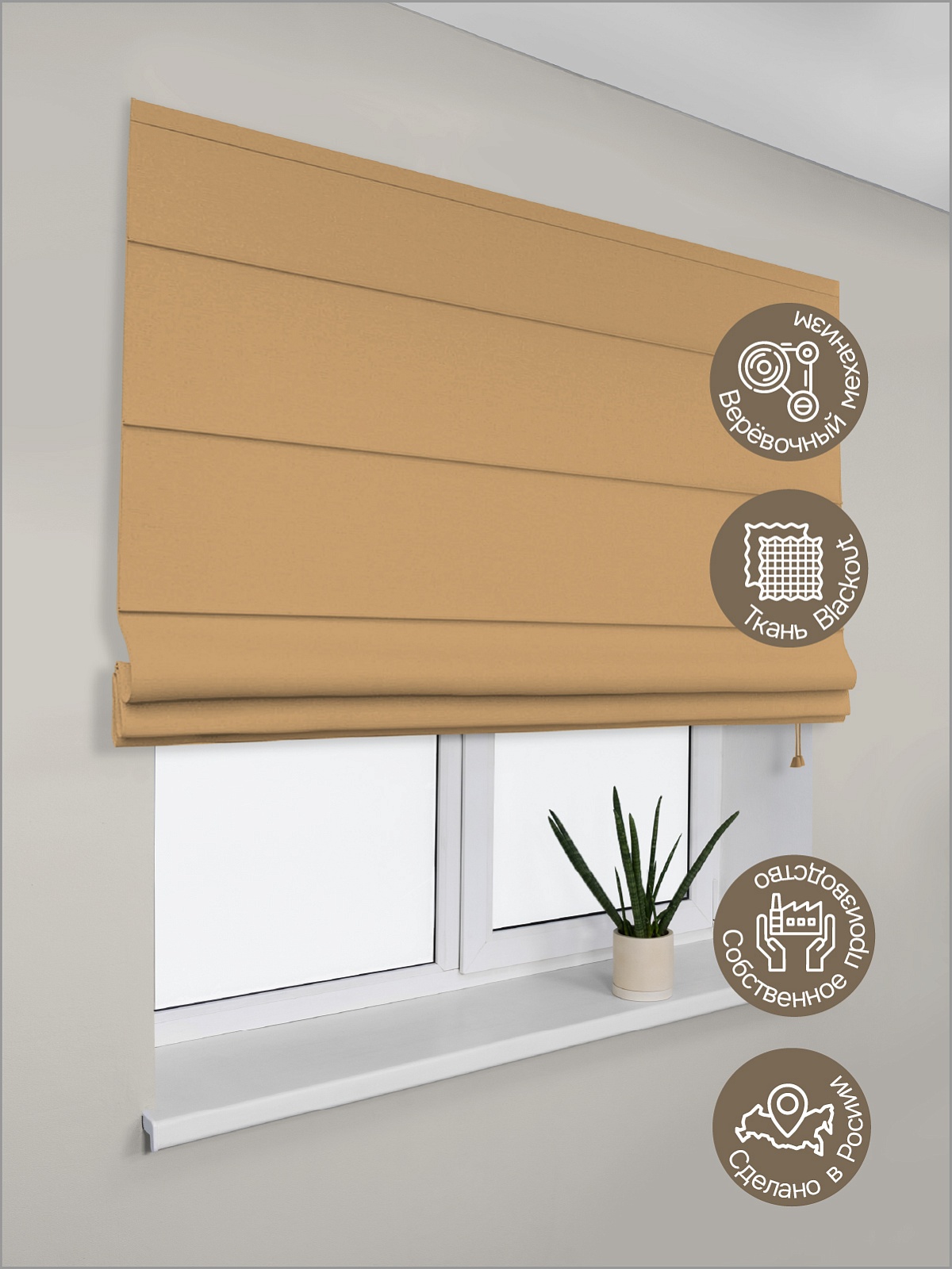 Римская штора на верёвочном механизме, Blackout, цвет солнечный