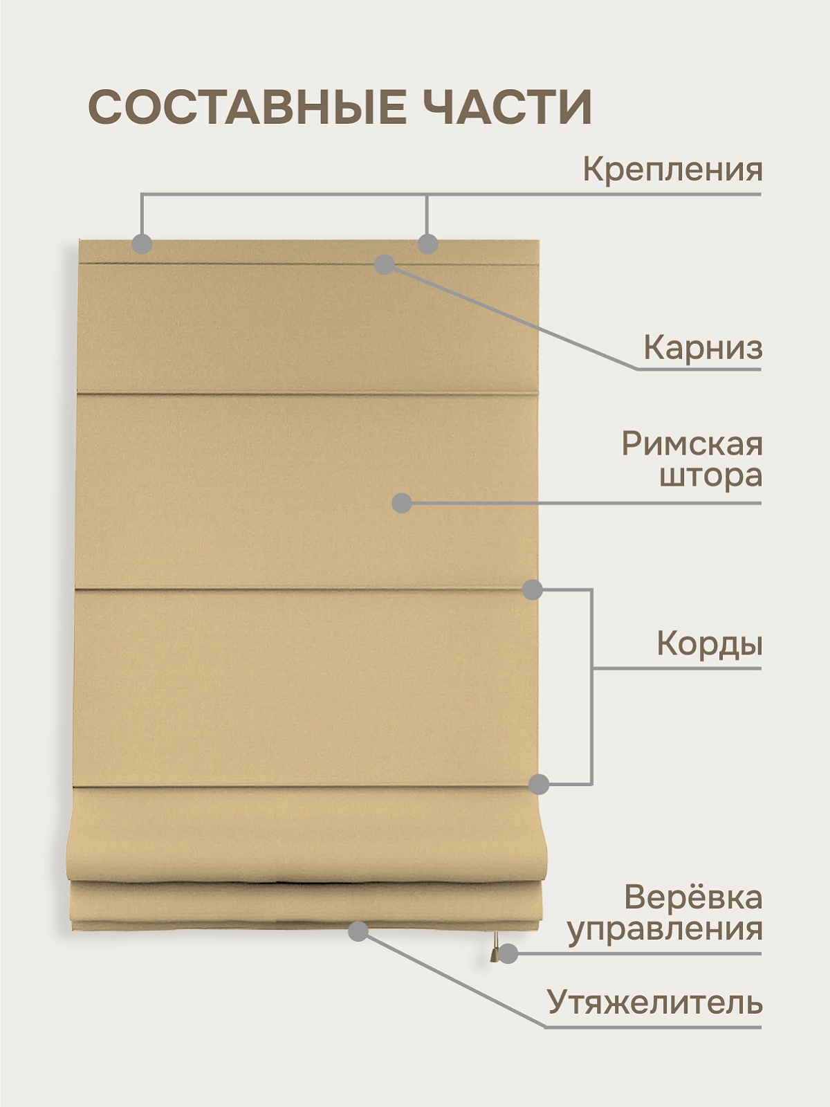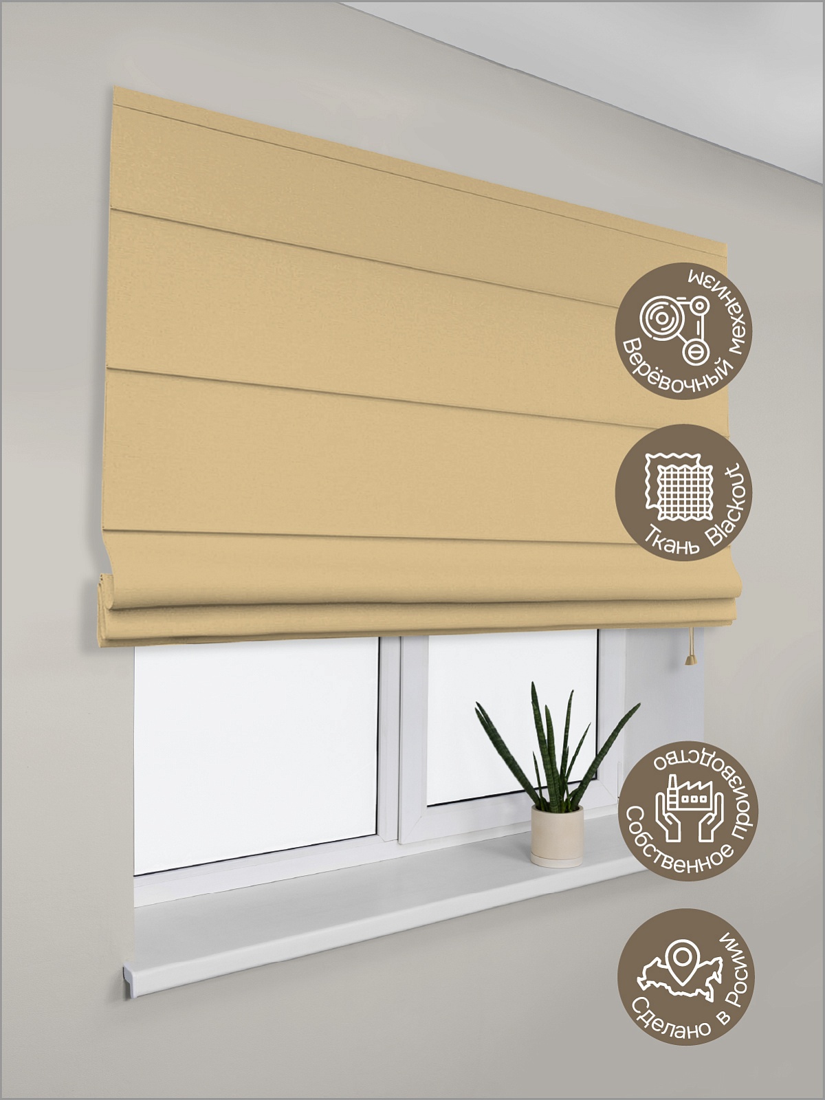Римская штора на верёвочном механизме, Blackout, цвет ваниль