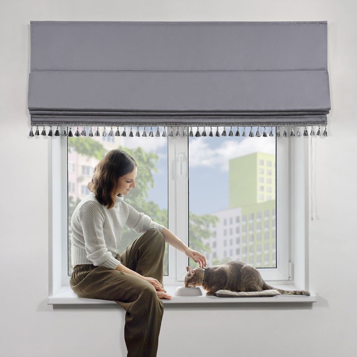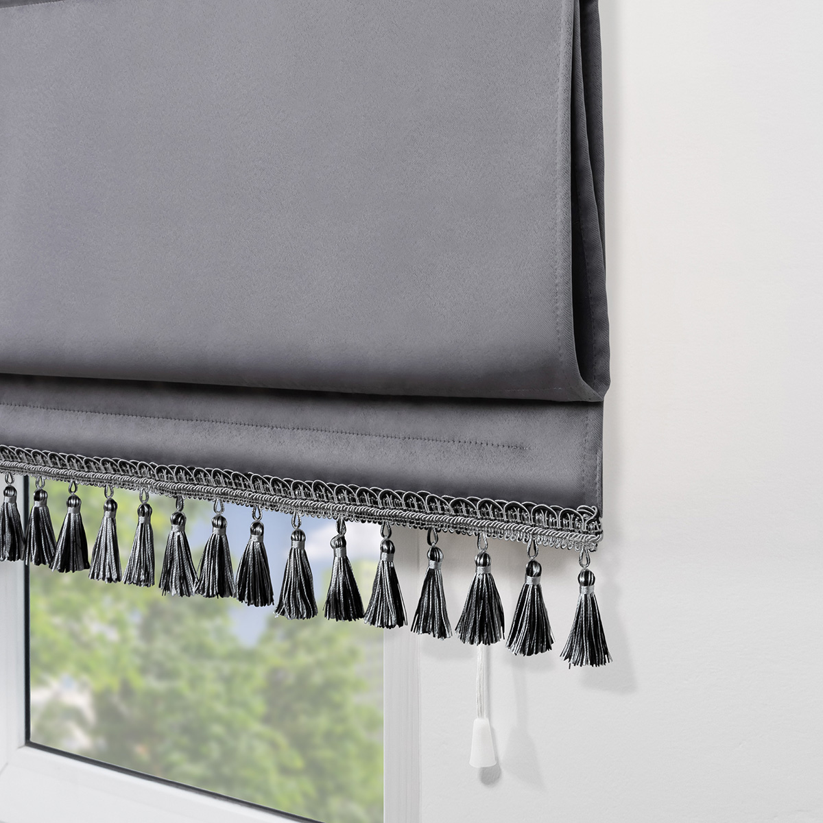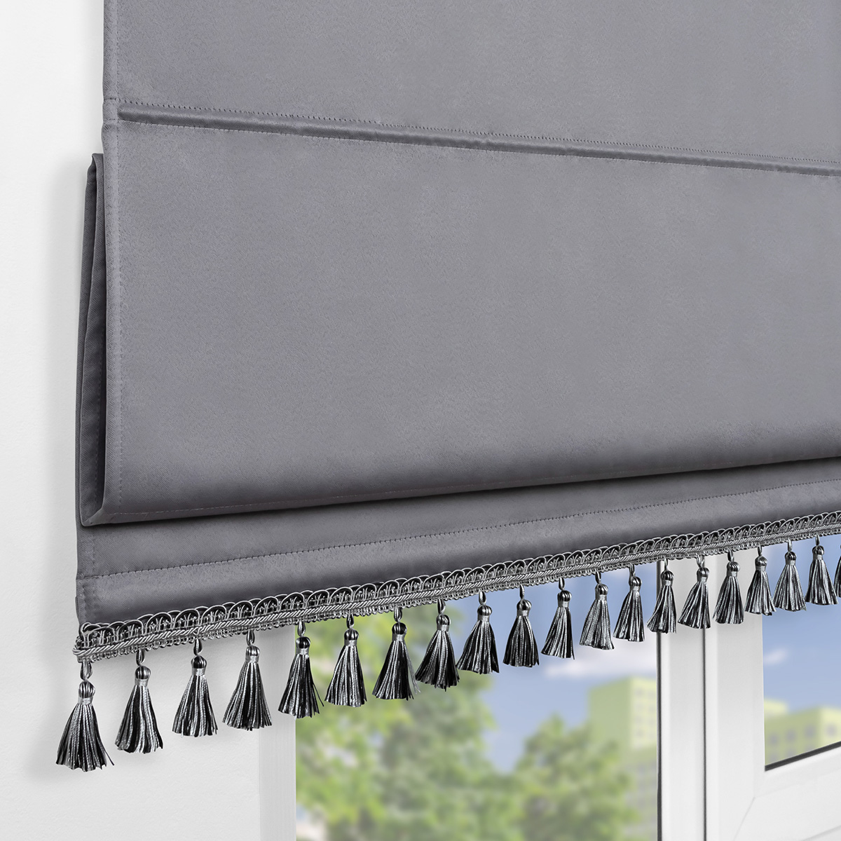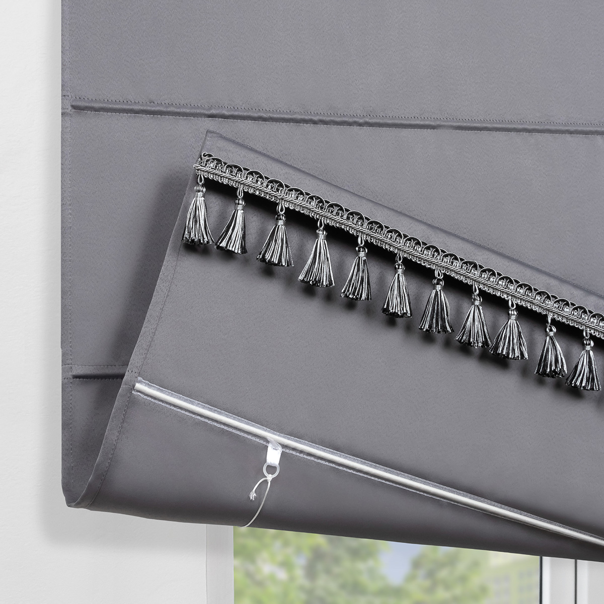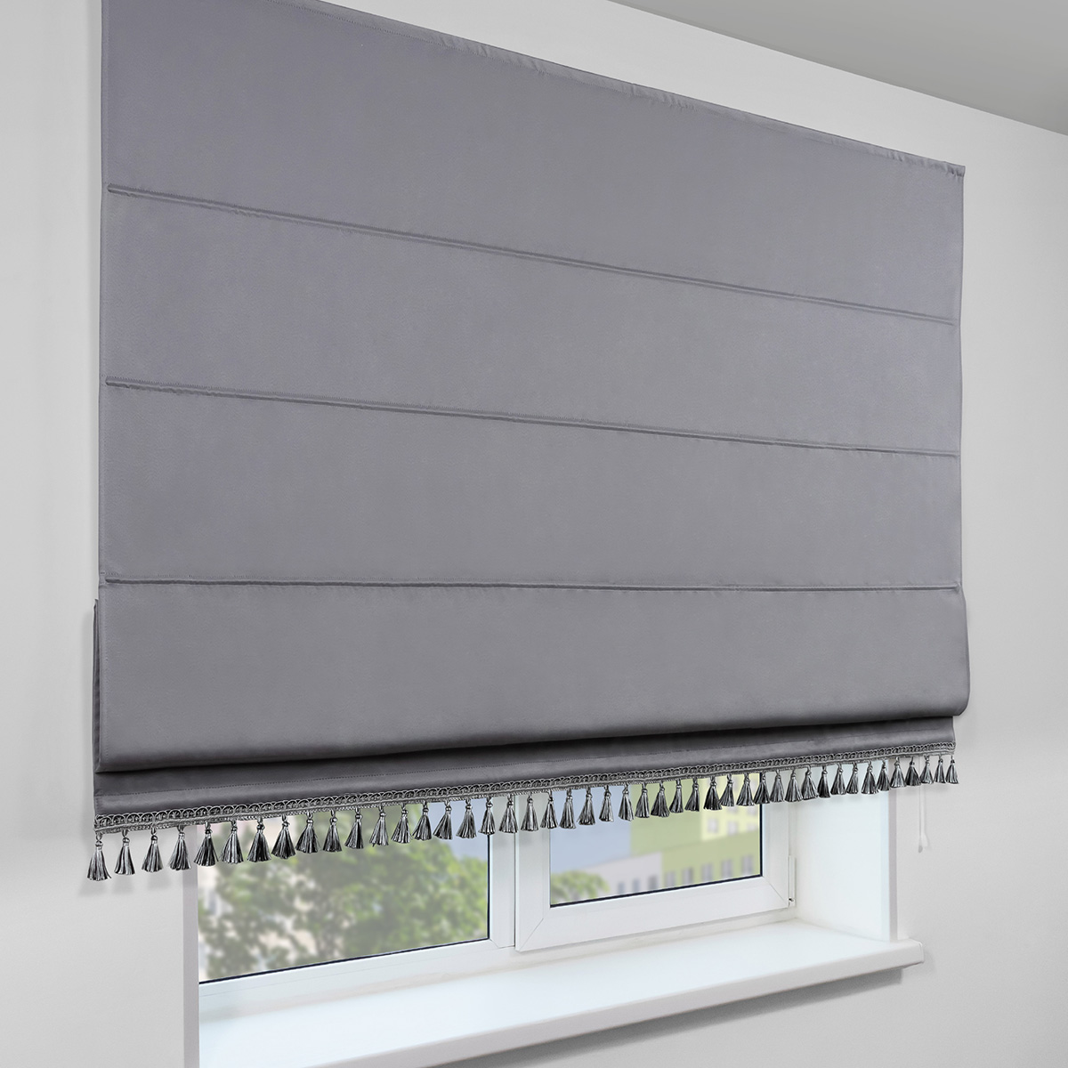 Римская штора с бахромой, Фортуна Blackout на ВМ, цвет серый