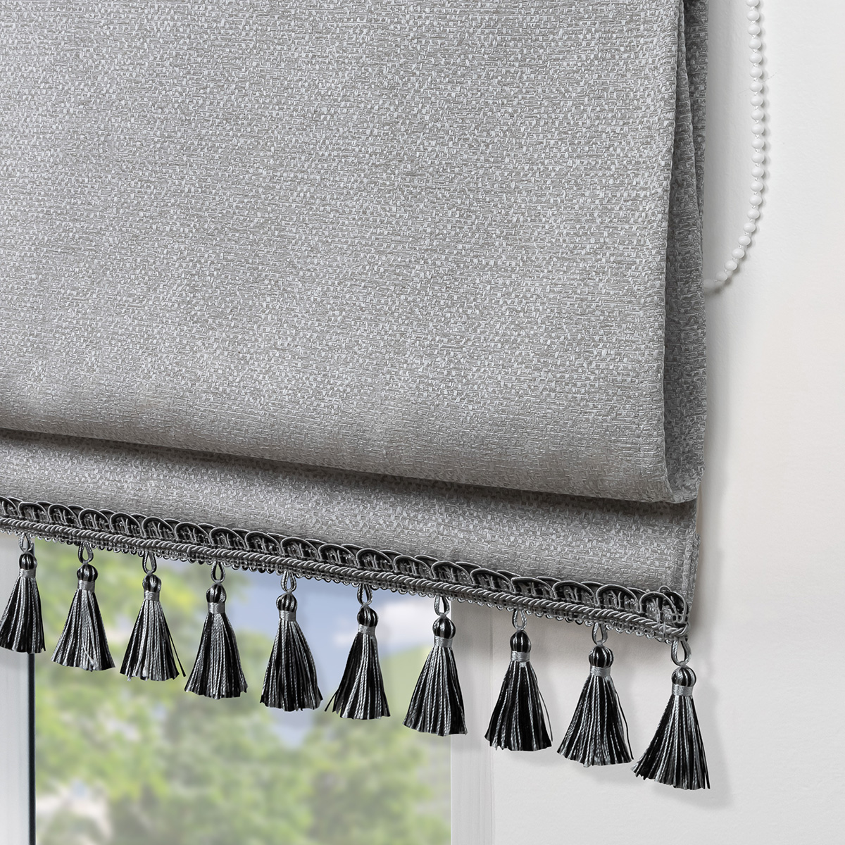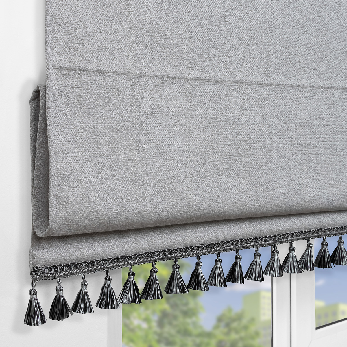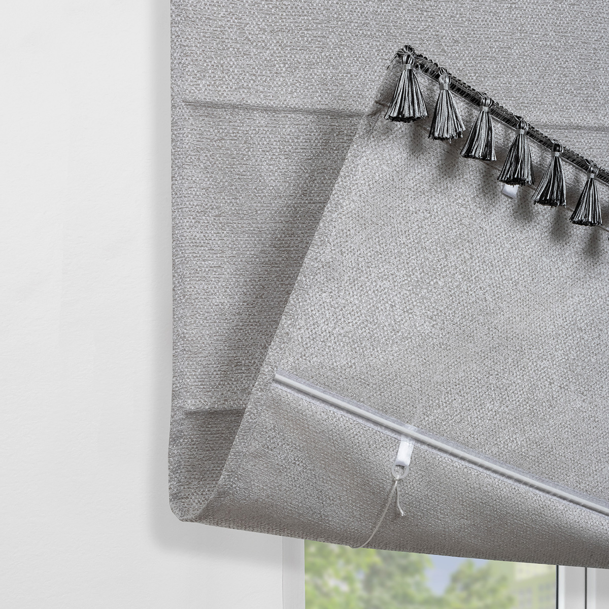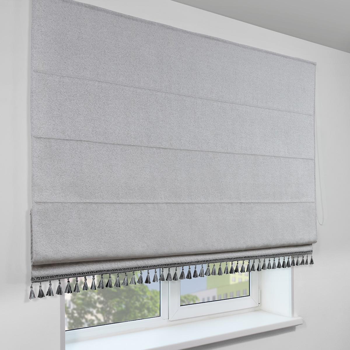 Римская штора с бахромой Валенсия, на цепочном механизме, цвет серый