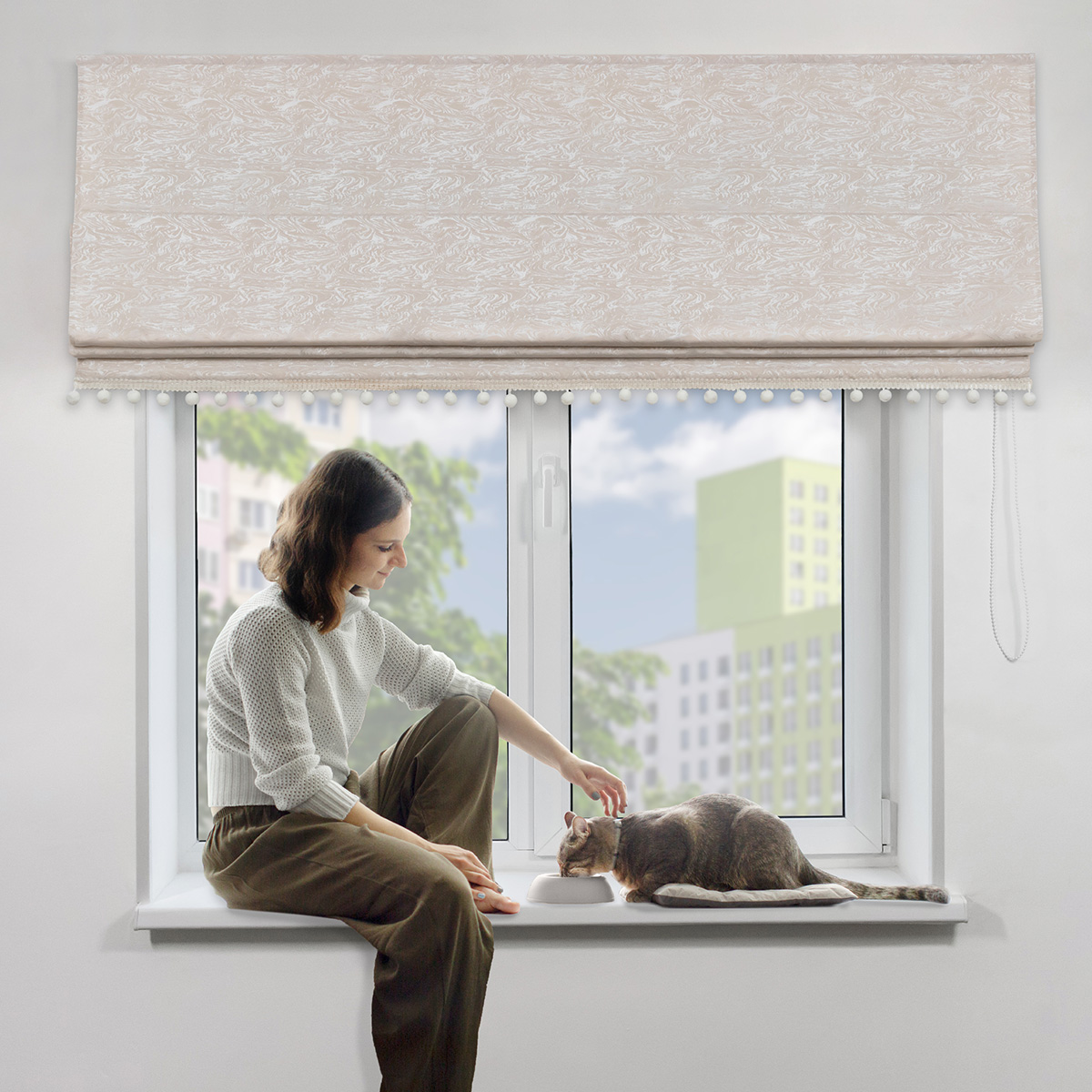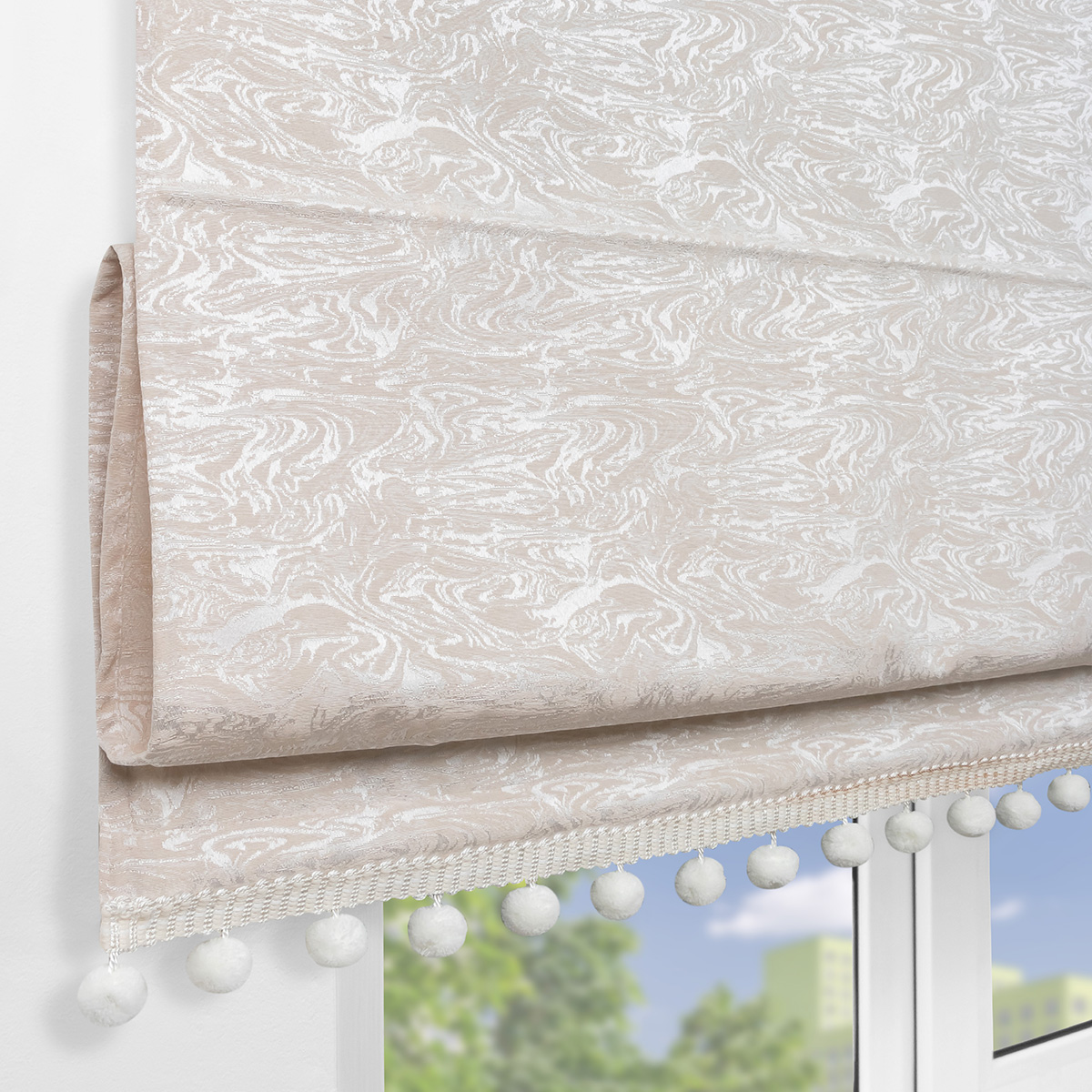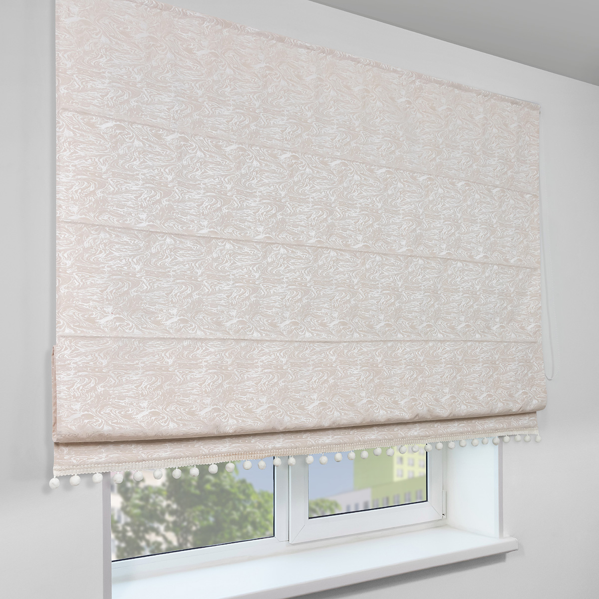 Римская штора с помпонами Сиеста, на цепочном механизме, цвет бежевый