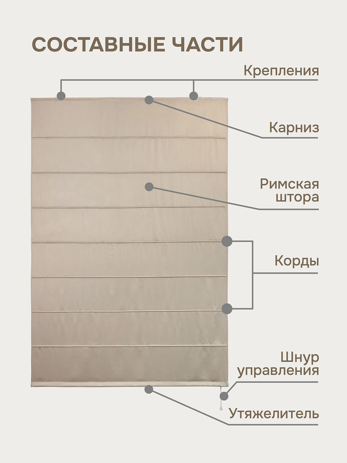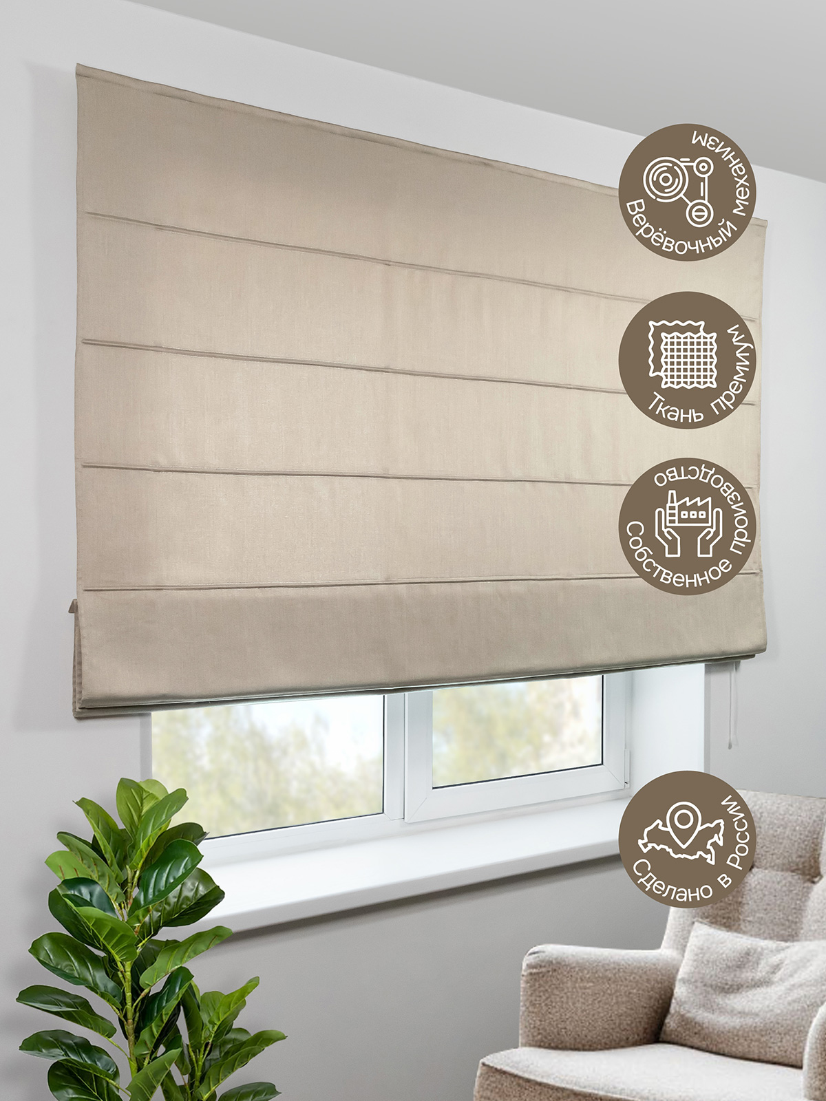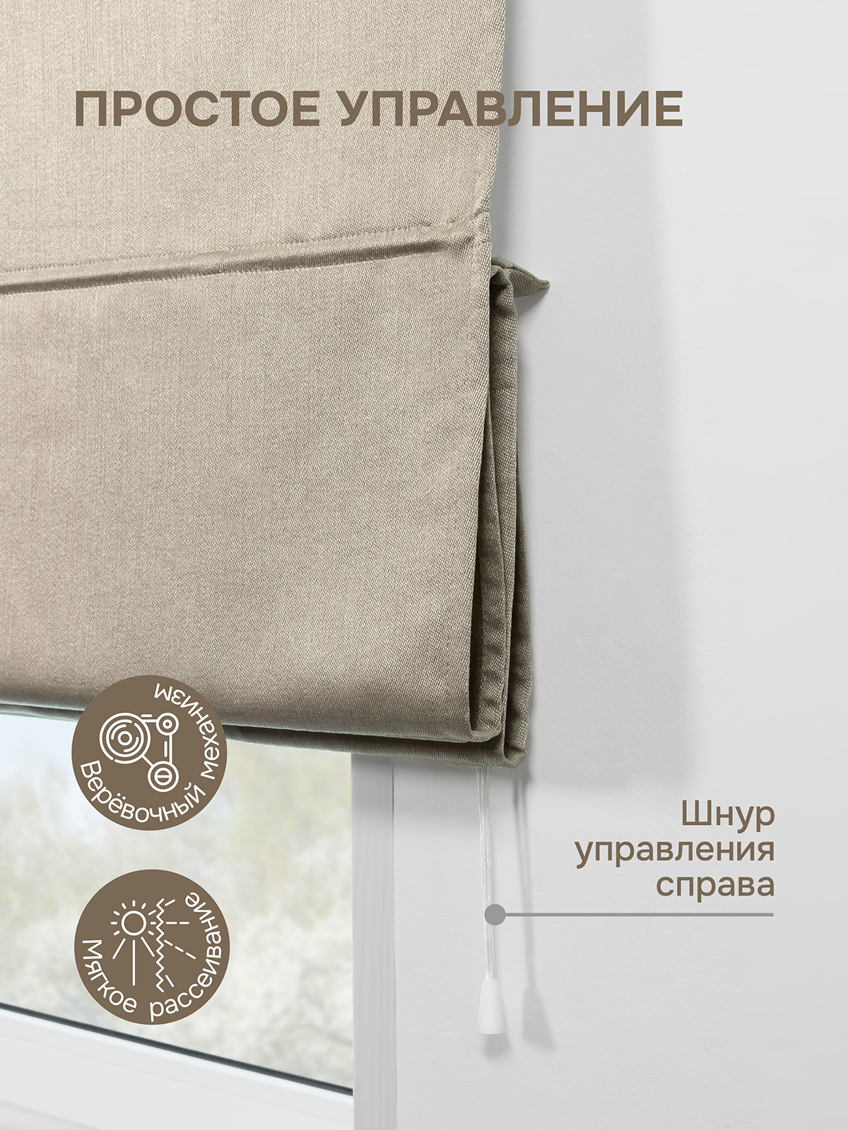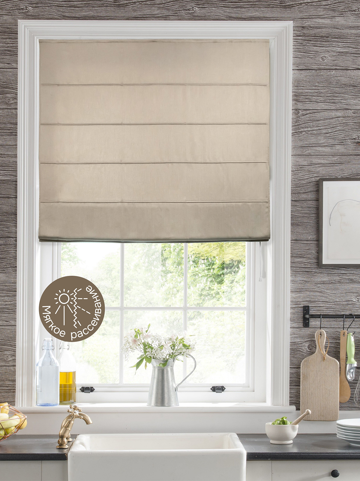 Римская штора Шанталь блеск на веревочном механизме бежевый