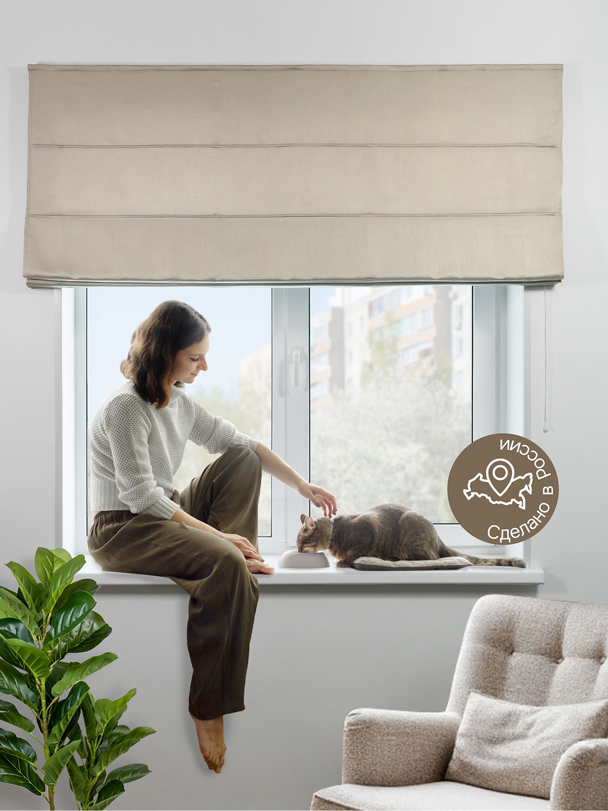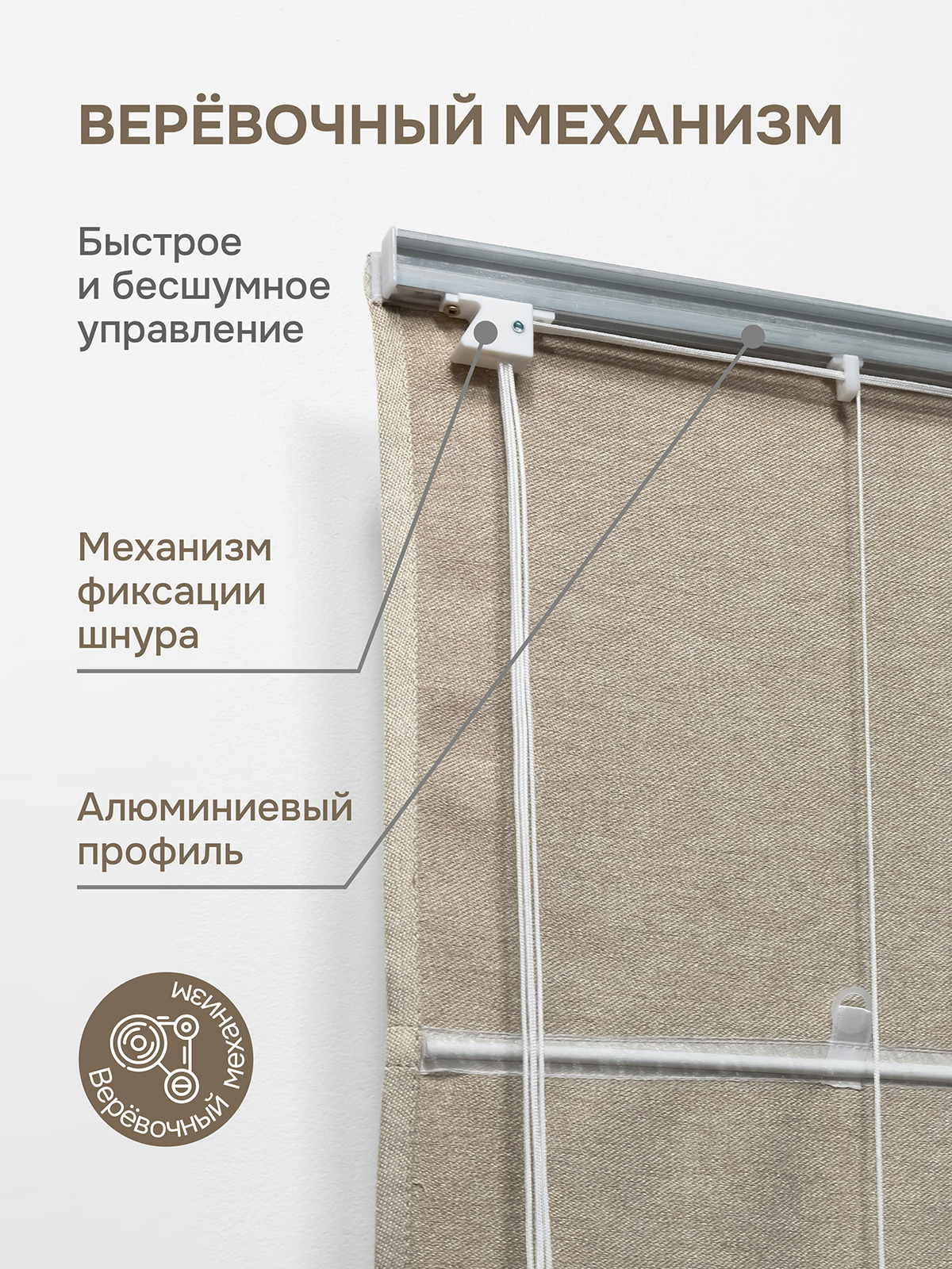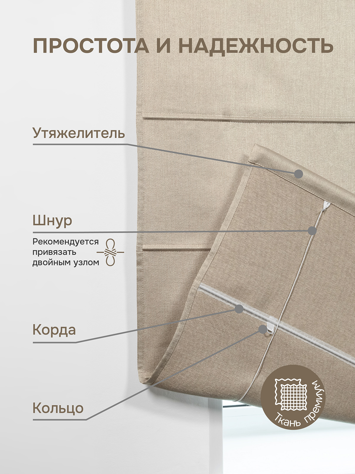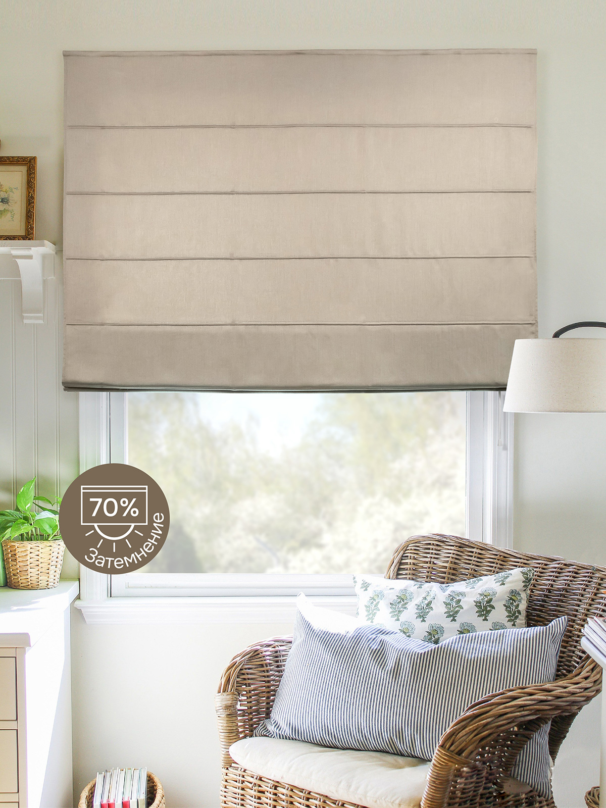 Римская штора Шанталь блеск на веревочном механизме бежевый