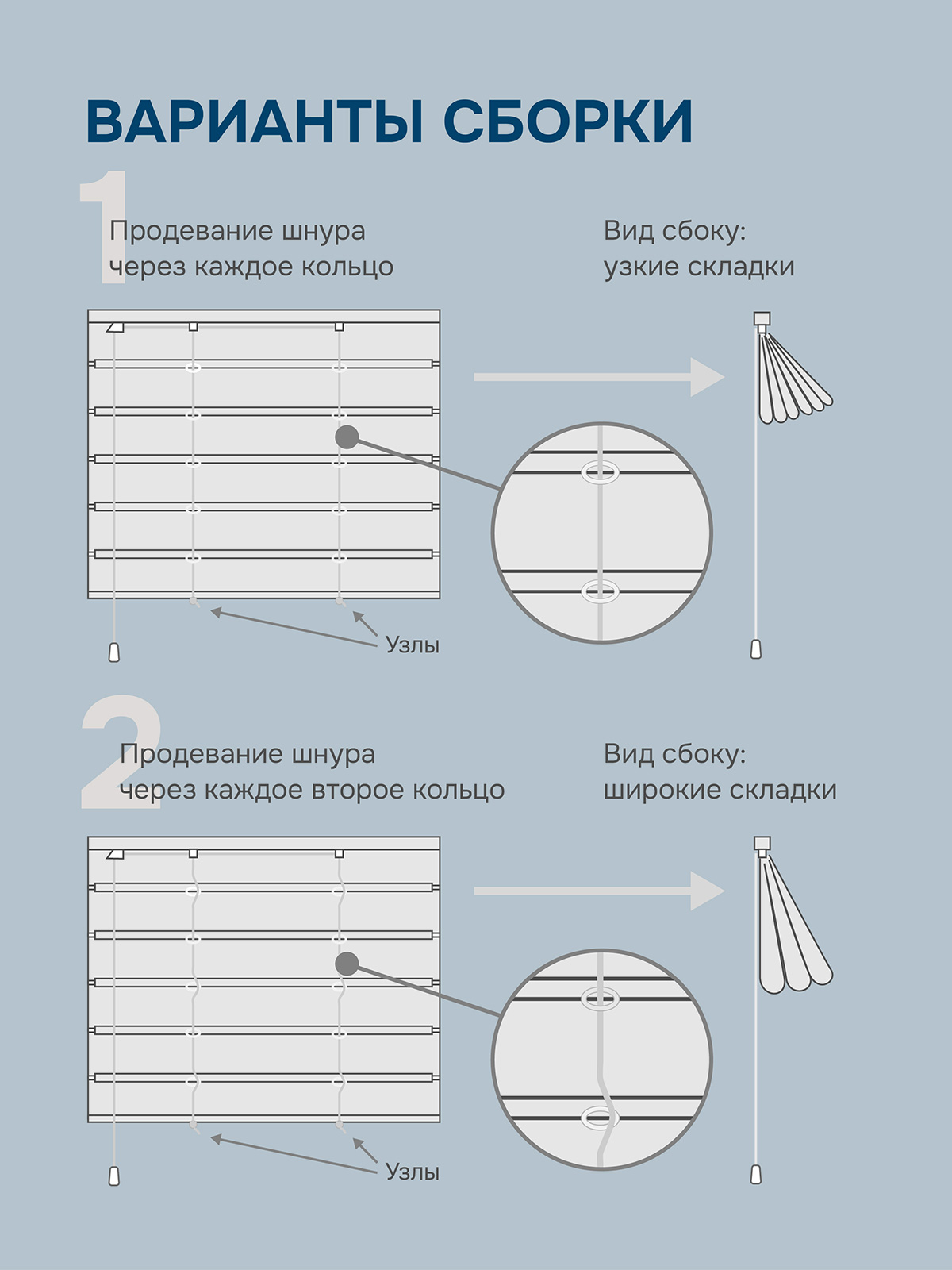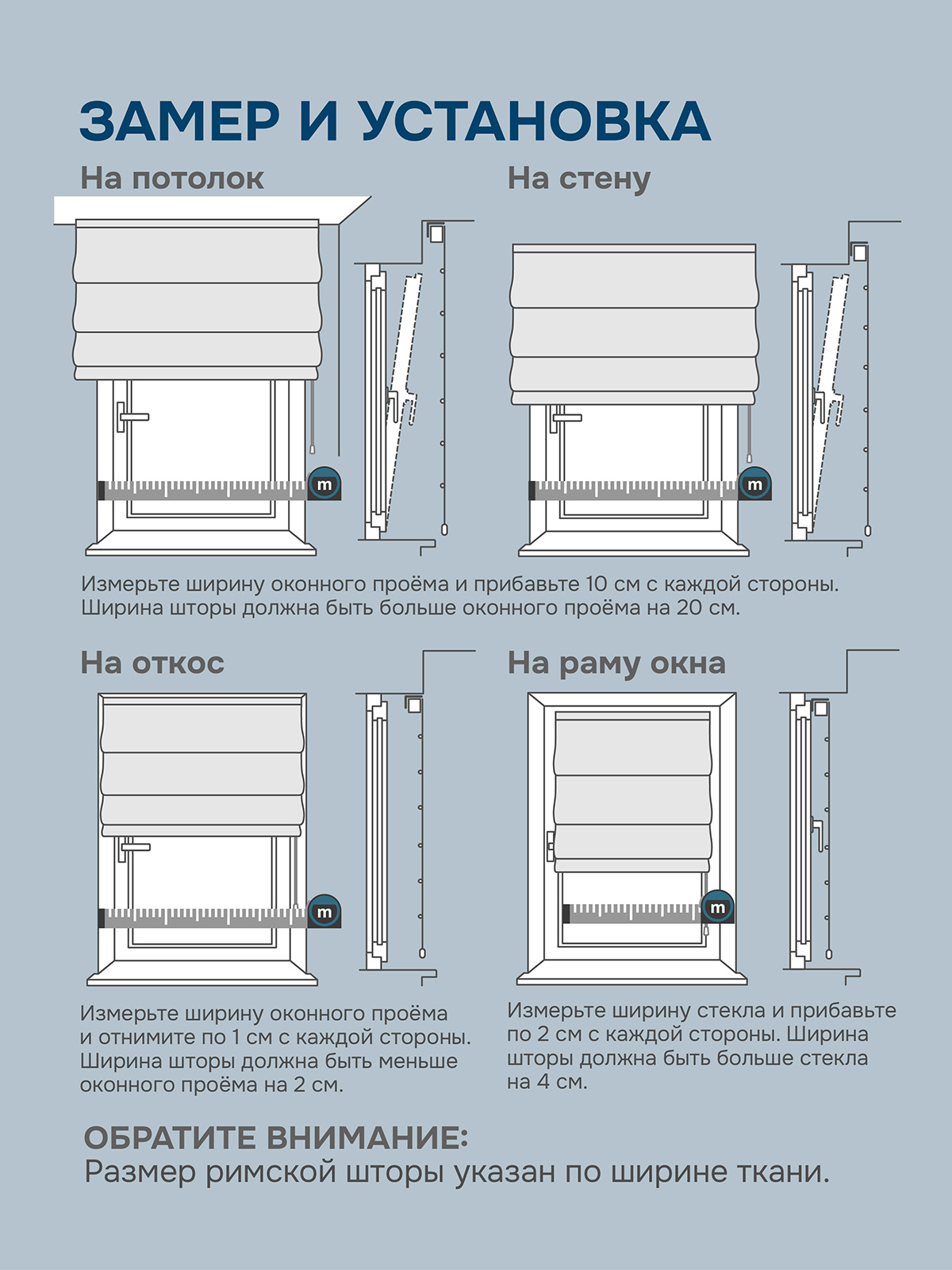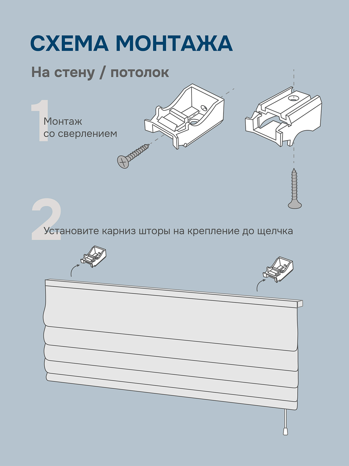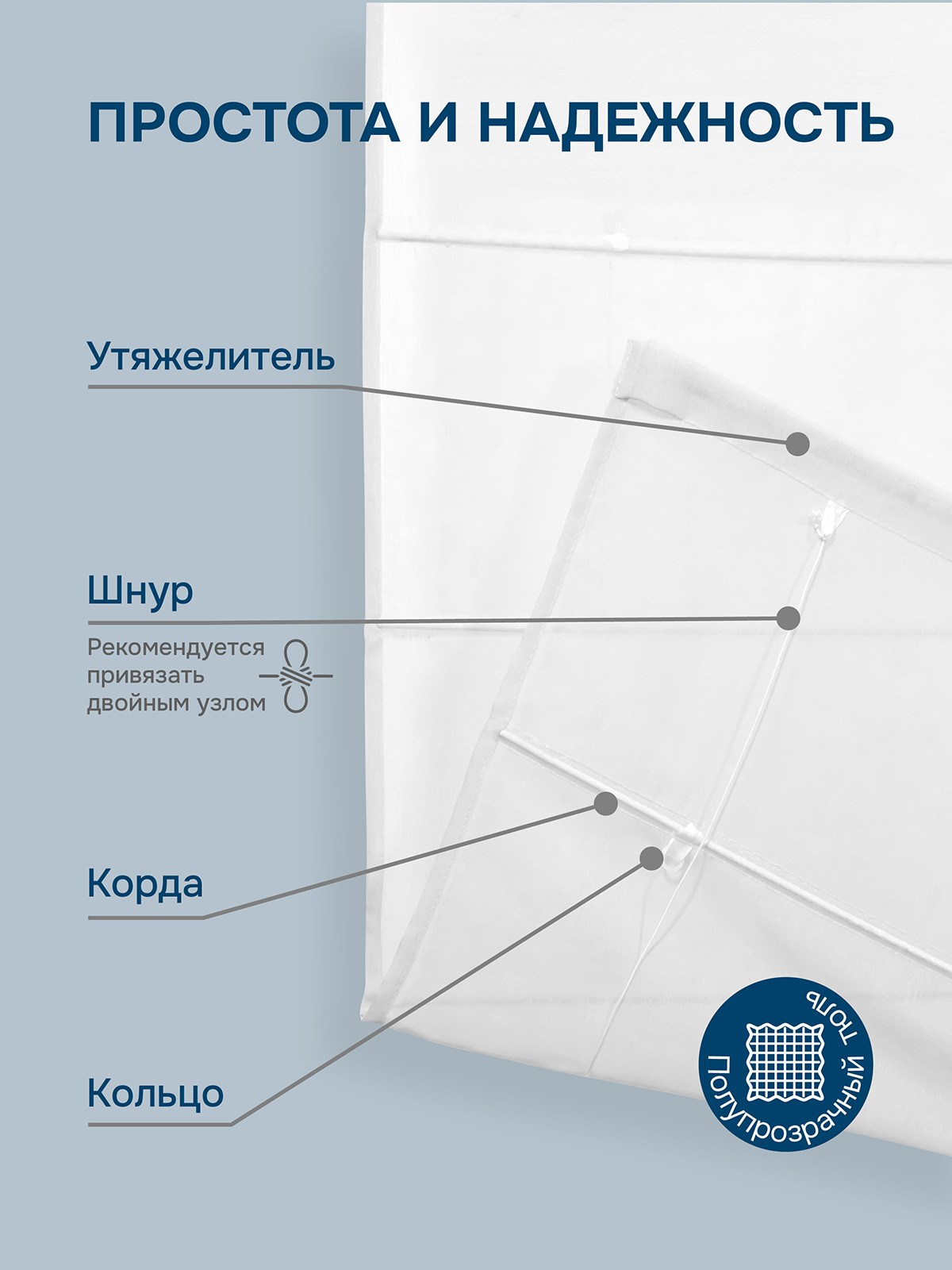 Комплектация: 1 римская штора в сборе, монтажный комплект для крепления, карниз для римских штор с веревочным механизмом, инструкция