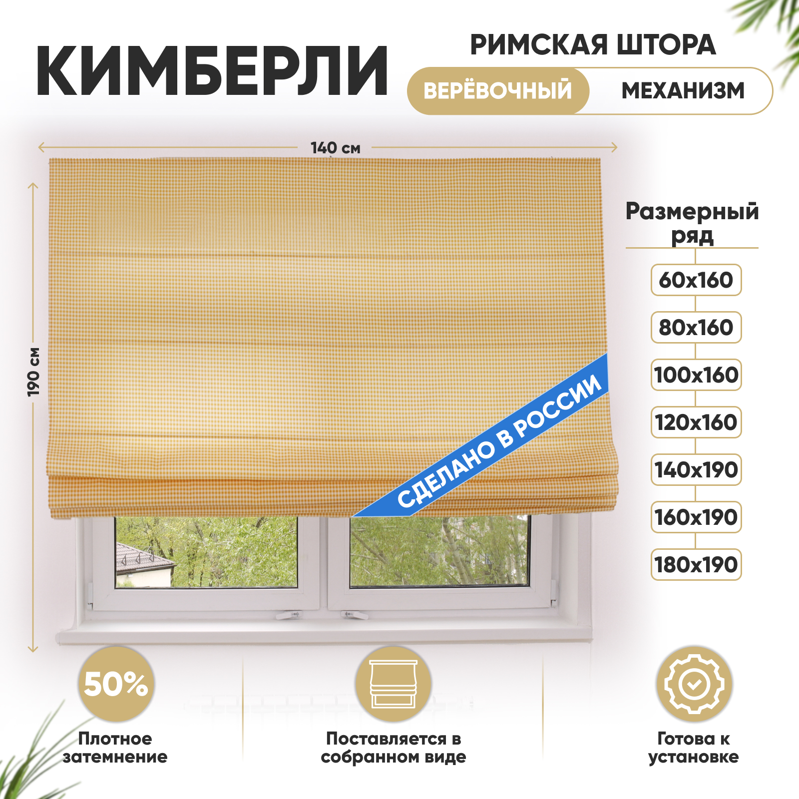 Предлагаемые римские шторы станут настоящим украшением интерьера. За счет специального надежного механизма при поднятии полотна шторы, получаются ровные складки, которые аккуратно укладываются одна на другую. Прочный, износостойкий материал полотна надолго сохранит первоначальный насыщенный цвет и текстуру. Римские шторы это эффективный способ защиты от яркого солнца и посторонних глаз с улицы. Клетка хорошо сочетаем с другими оттенками цветового спектра, что позволяет данной модели легко вписаться в любое стилистическое решение интерьера. Римские шторы Кимберли прекрасно применимы как декор и как качественная светозащита в спальне, детской, гостиной.
