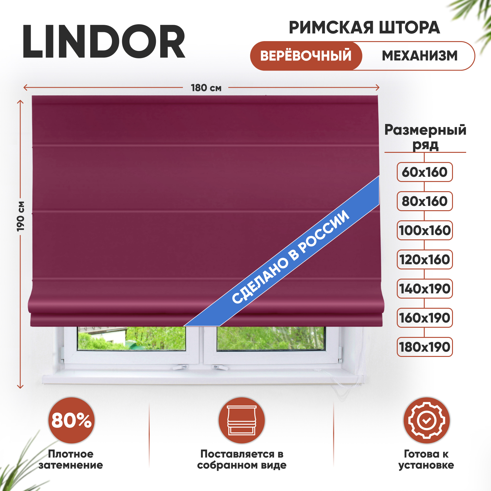 Римские шторы Lindor на веревочном механизме цвет вишневый