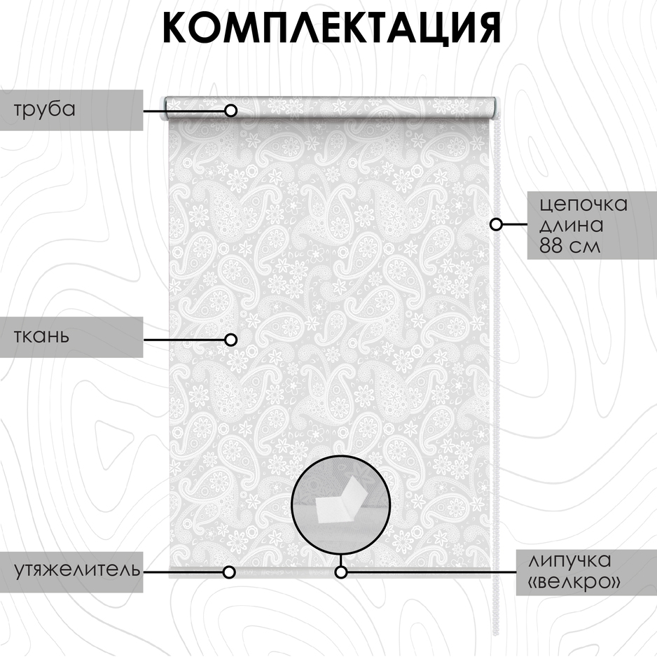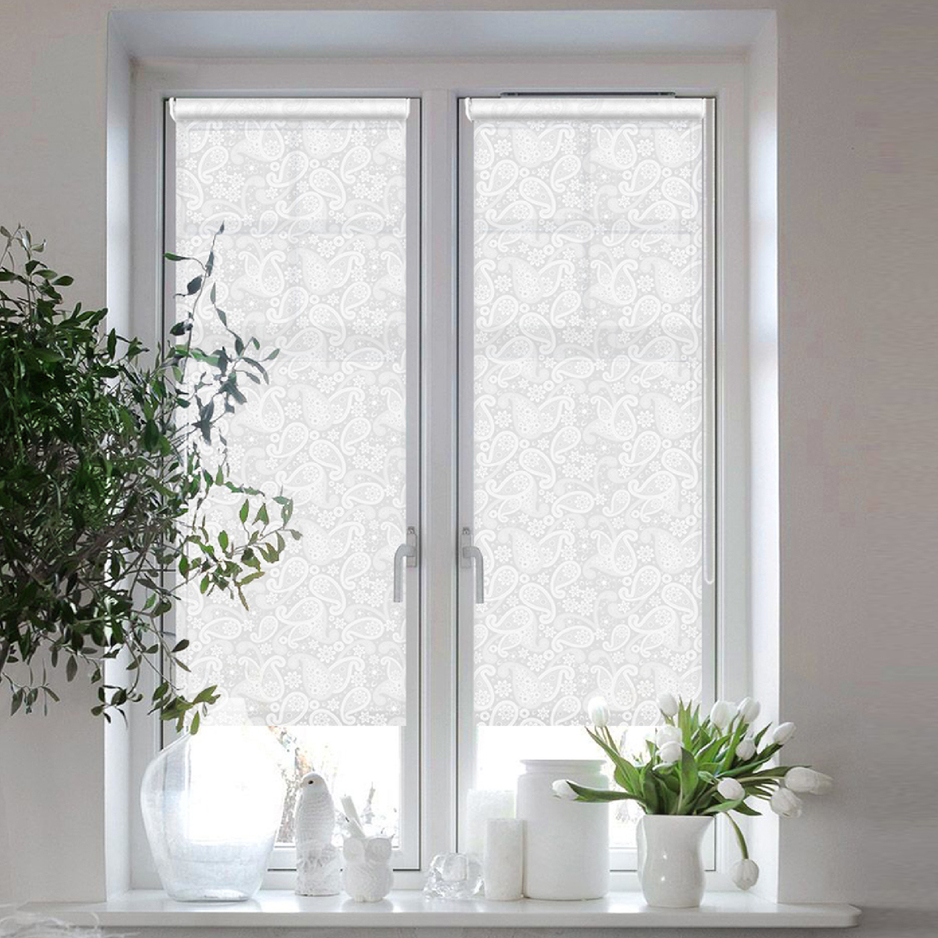 Рулонные шторы со стильным классическим узором пэйсли. Легкий, ненавязчивый классический рисунок будет идеально подчеркивать невесомость шторы. Тонкая ткань рассеивает свет, эффективно скрывает от посторонних глаз. Рулонная штора подходит для использования на кухне, в спальне, в деткой. Указан размер по ширине ткани! Для правильного подбора рулонной шторы - измерьте ширину стекла, прибавьте 3-4 см. Размер должен соответствовать ширине по штапикам и не закрывать ручки. При сборке шторы вы можете поставить цепочный механизм как справа, так и слева – для этого выберите сторону и прокрутите цепочку так, чтобы соединитель оказался внутри (есть фотоинструкция).  В комплекте – 1 рулонная штора и монтажный комплект. Крепление с помощью зажимов и двустороннего скотча на откидное или глухое окно. Не требует сверления, обязательно обезжирьте поверхность перед монтажом.