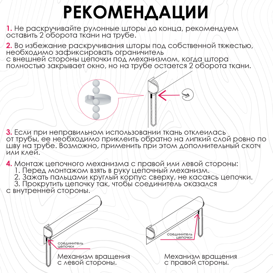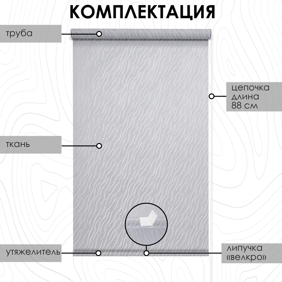 Комплектация: 1 рулонная штора в сборе, монтажный комплект для крепления, инструкция