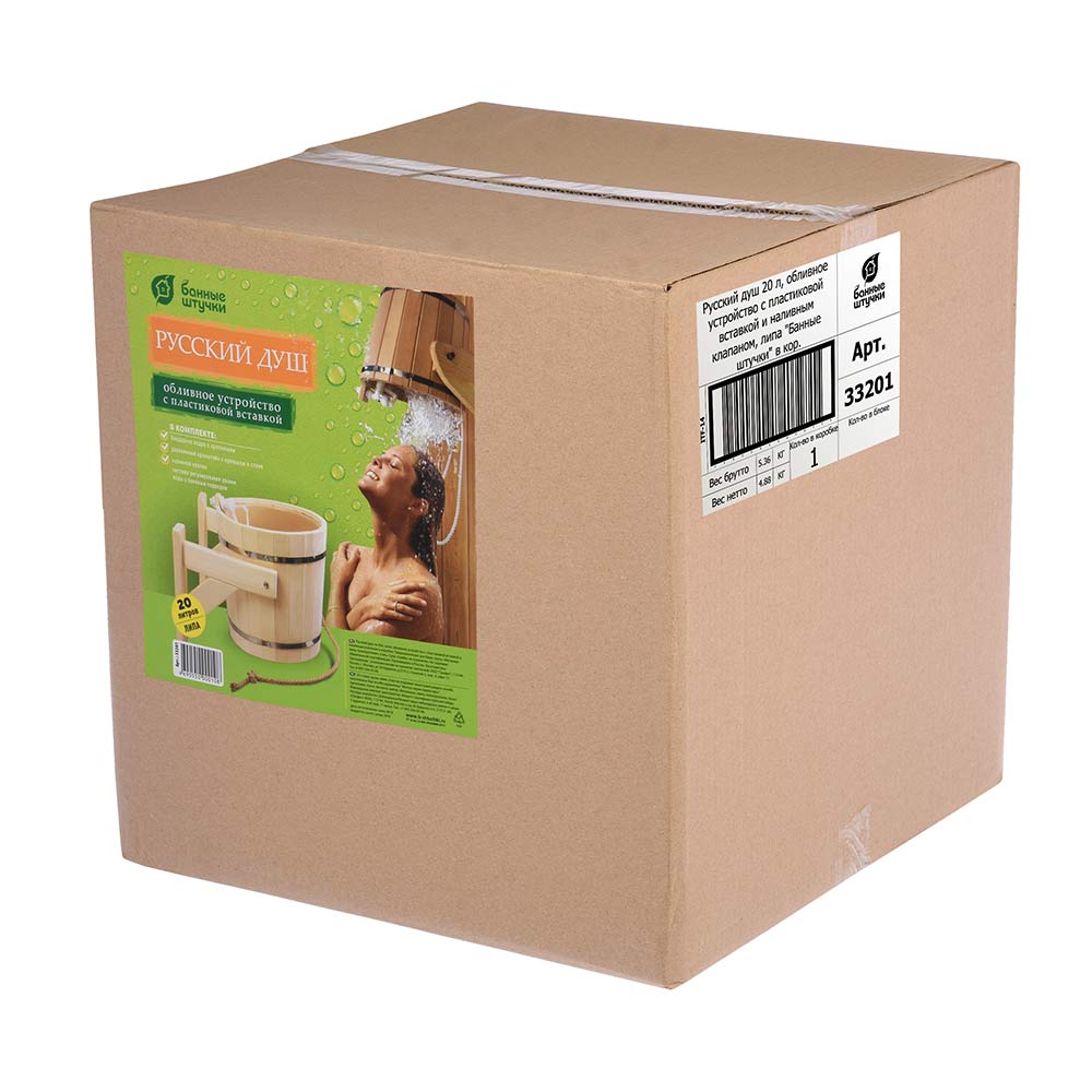 Русский душ 20 л, обливное устройство c пластиковой вставкой и наливным клапаном, липа "Банные штучки"