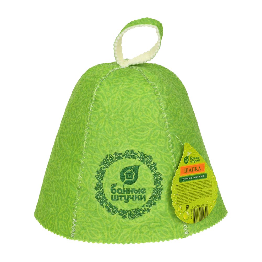 Шапка для бани и сауны с узором и логотипом "Банные штучки", войлок, 100% шерсть