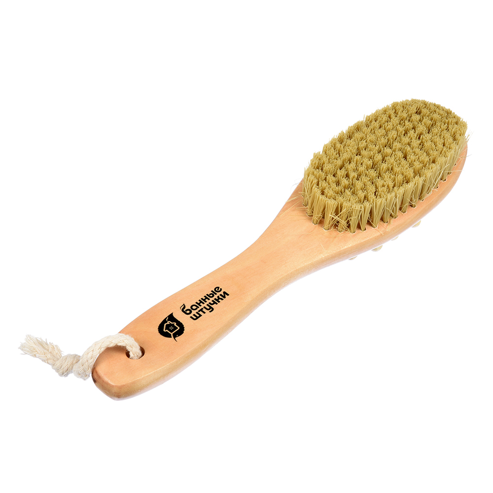 Щетка деревянная, двусторонняя с массажером, 22 см, для бани и сауны "Банные штучки"