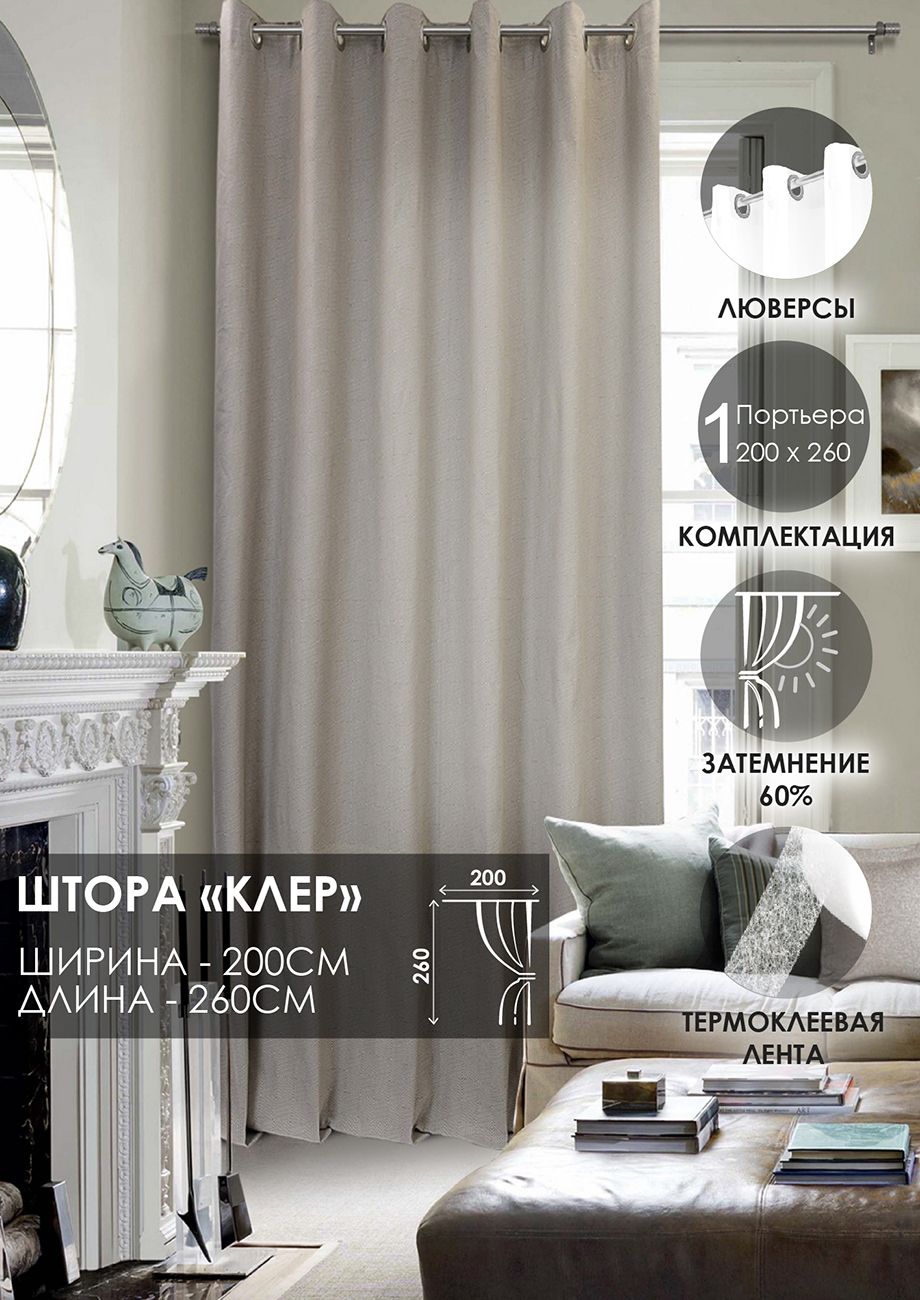 Штора на люверсах "Клер" 200х260, цвет бежевый