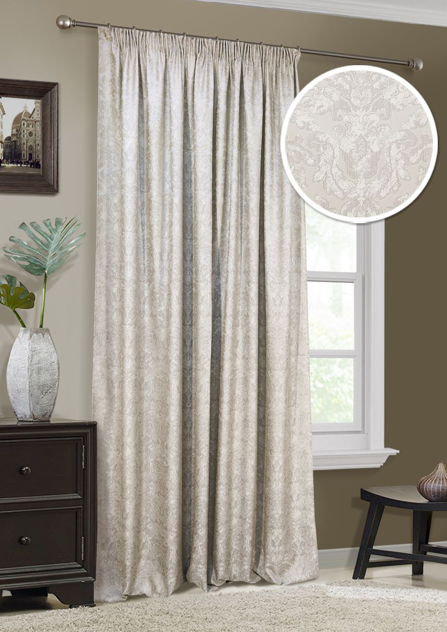 Тип ткани: Жаккард — это ткань с уникальным переплетением, которая обладает богатым текстурным рисунком. Она придаёт помещению роскошный вид и уютную атмосферу, благодаря своей глубине и выразительности.