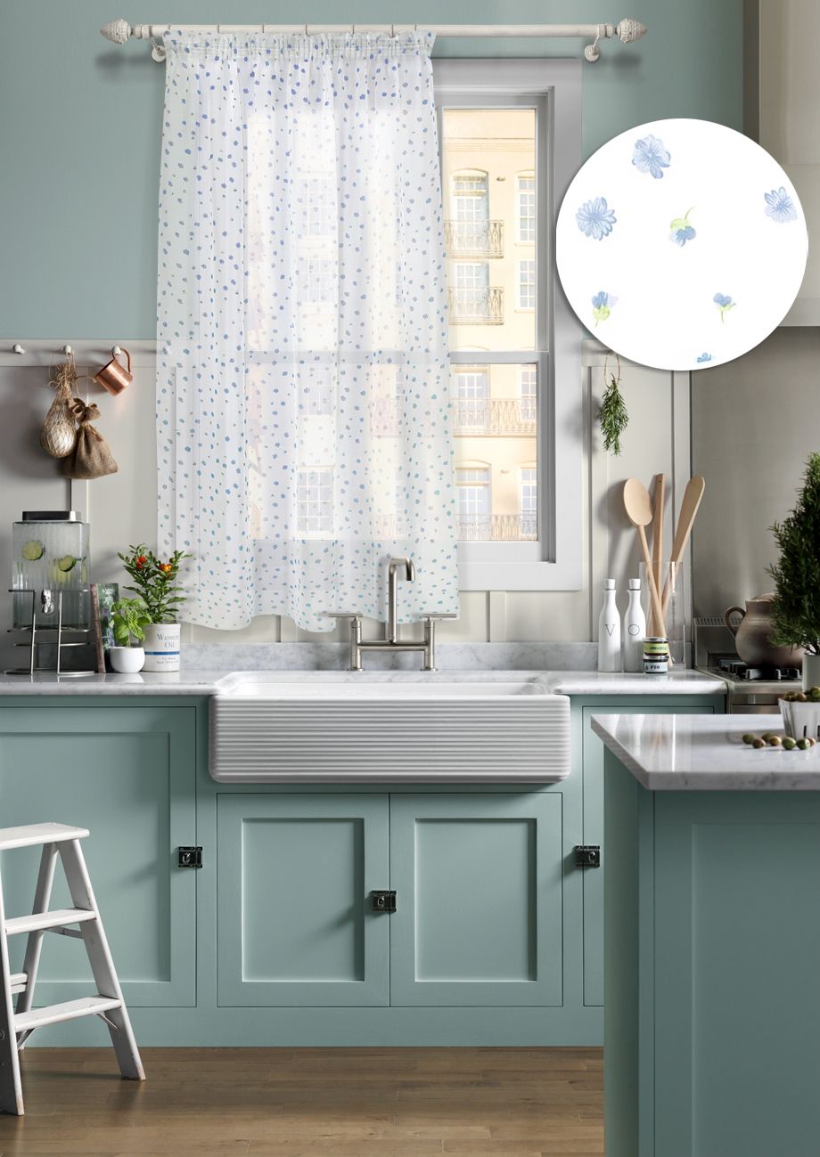 Вуаль для кухни "Sole" 140х175см белая с рисунком (Синий)
