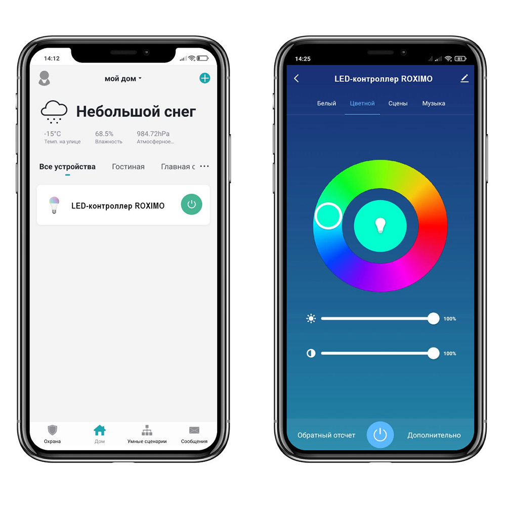 Устройством можно управлять с помощью специального приложения из любой точки планеты, настраивать температуру белого света, настраивать яркость и цветовую палитру LED ленты, добавлять умные сценарии и расписания включения/выключения по времени, обратному отсчету, а также в зависимости от таких триггеров как погода, время заката и восхода солнца, вашего местоположения и т.д.